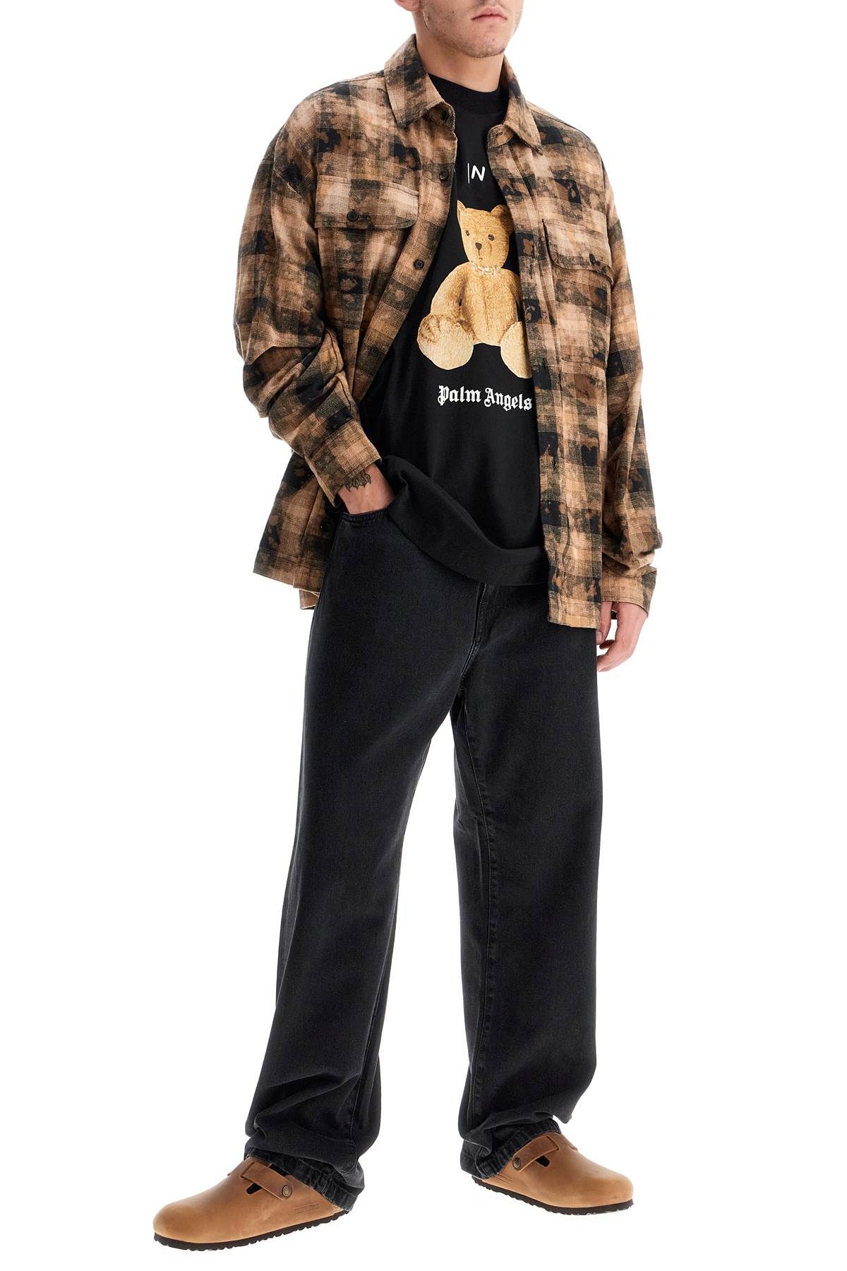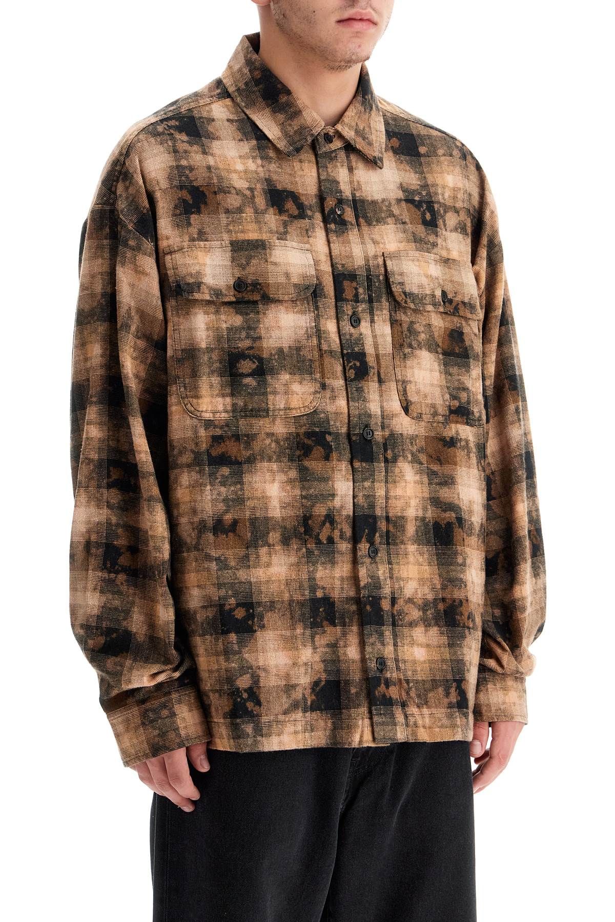 The Palm Angels oversized flannel shirt features a faded checkered pattern and is printed with the Curved logo on the back hem