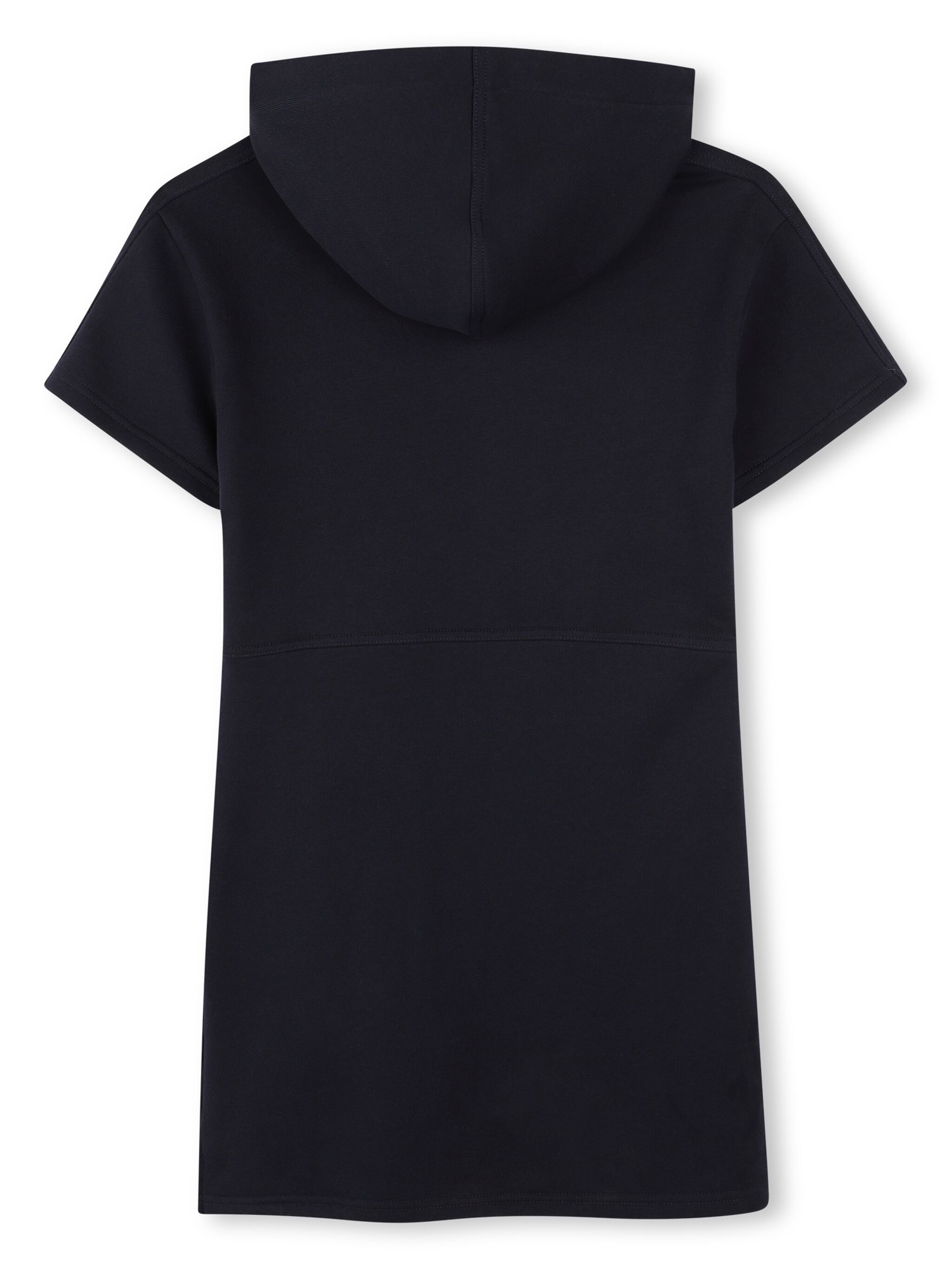 midnight blue organic cotton jersey texture drawstring hood short sleeves embroidered logo at the chest front pouch pocket straight hem