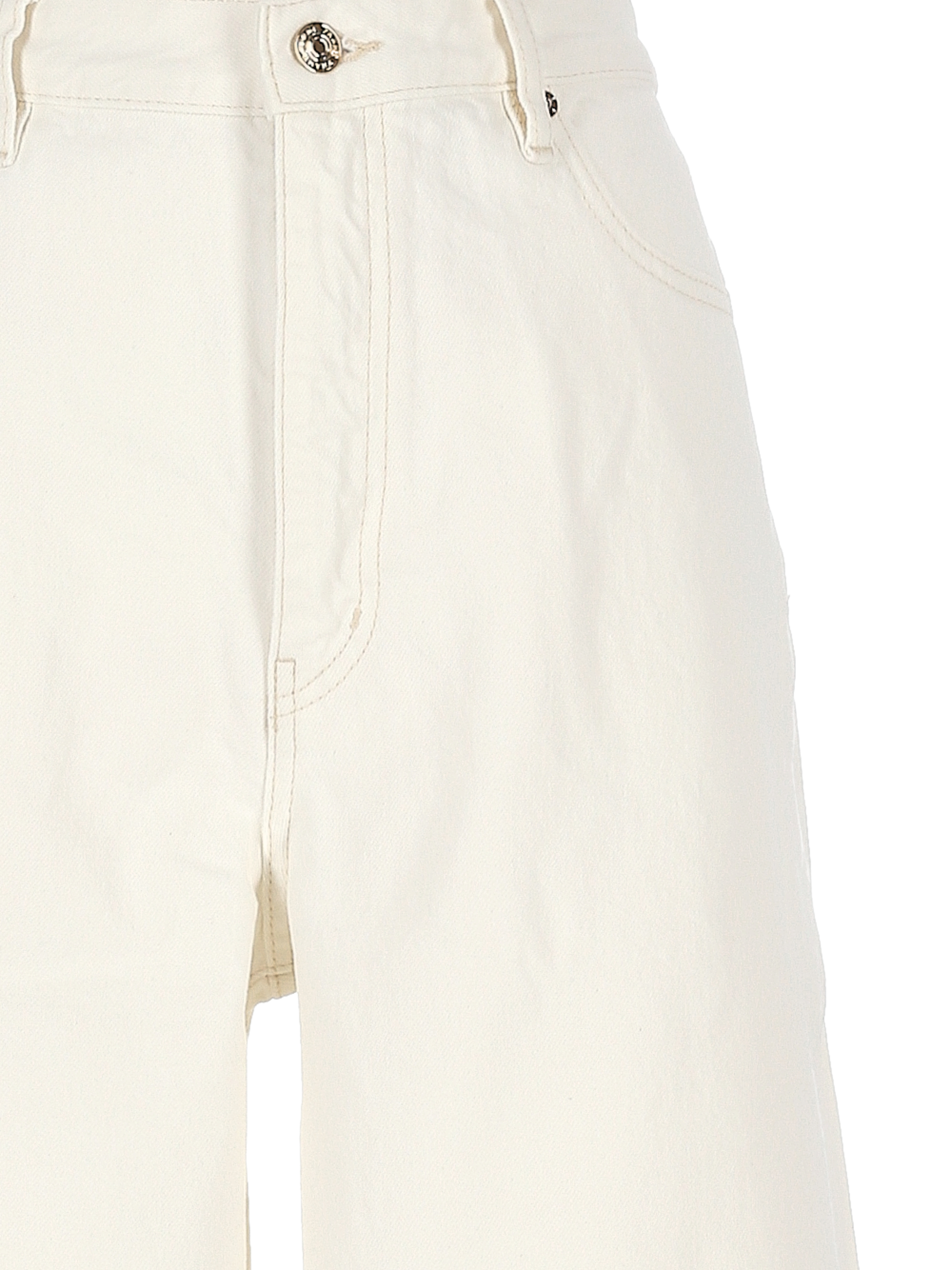 white front button and zip fastening classic five pockets
