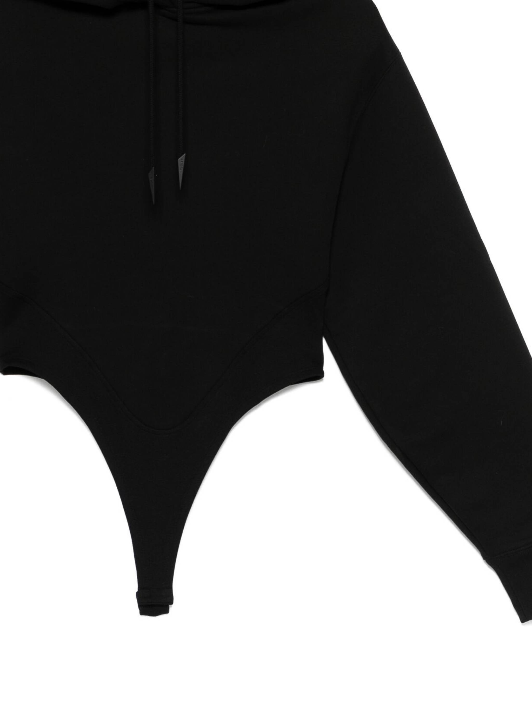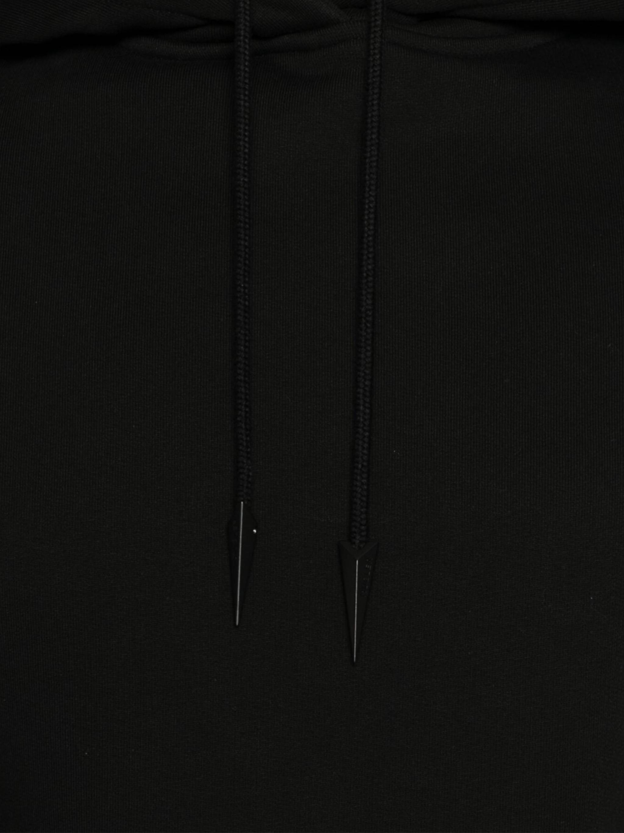 Black snapfit fastening drawstring hood long sleeves ribbed cuffs