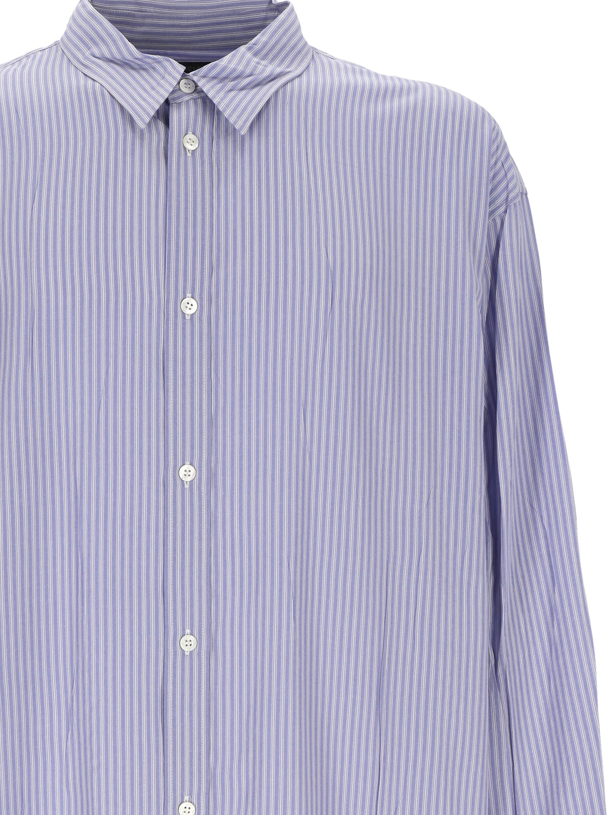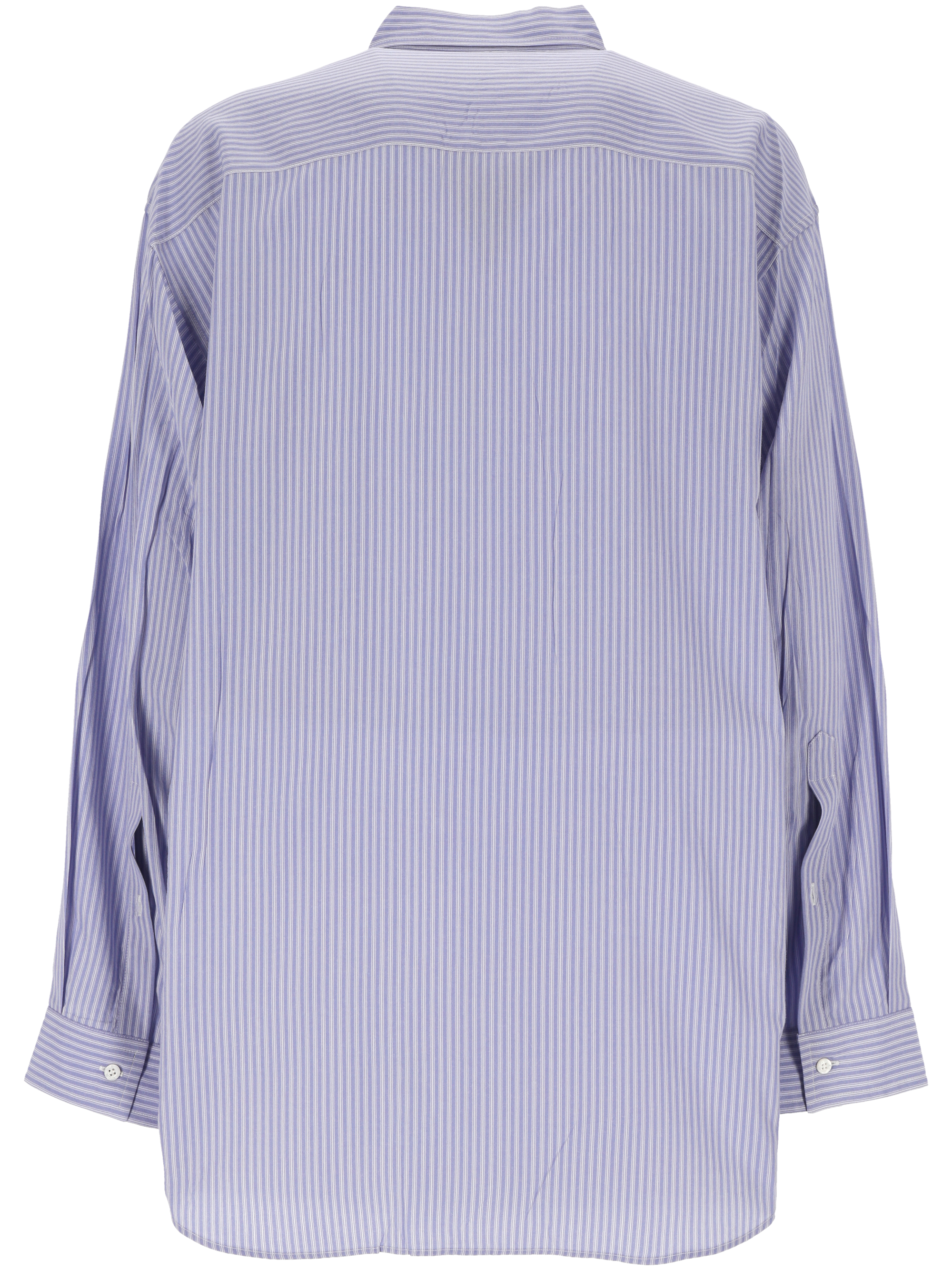 whitelight bluelyocellpoplin texturevertical striped patternFront closure with buttoningFrench collarlong sleevesButtoned cuffscurved hem