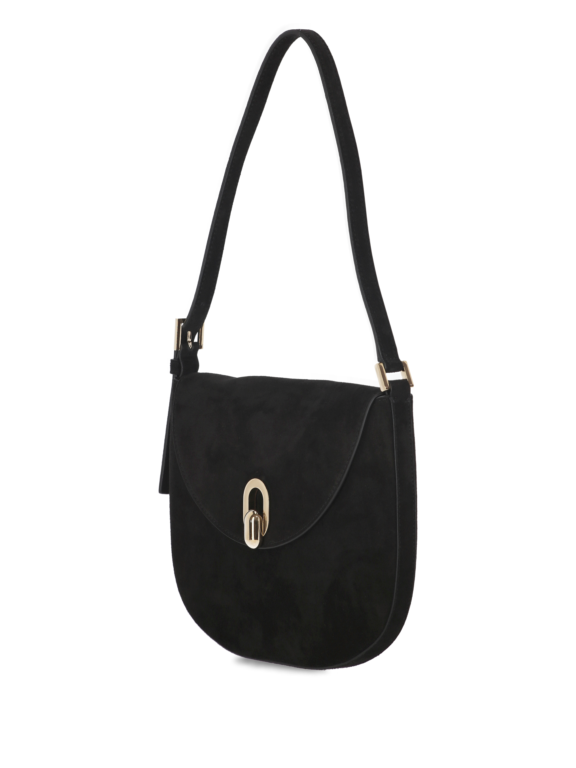 black foldover top clasp fastening adjustable shoulder strap internal patch pocket