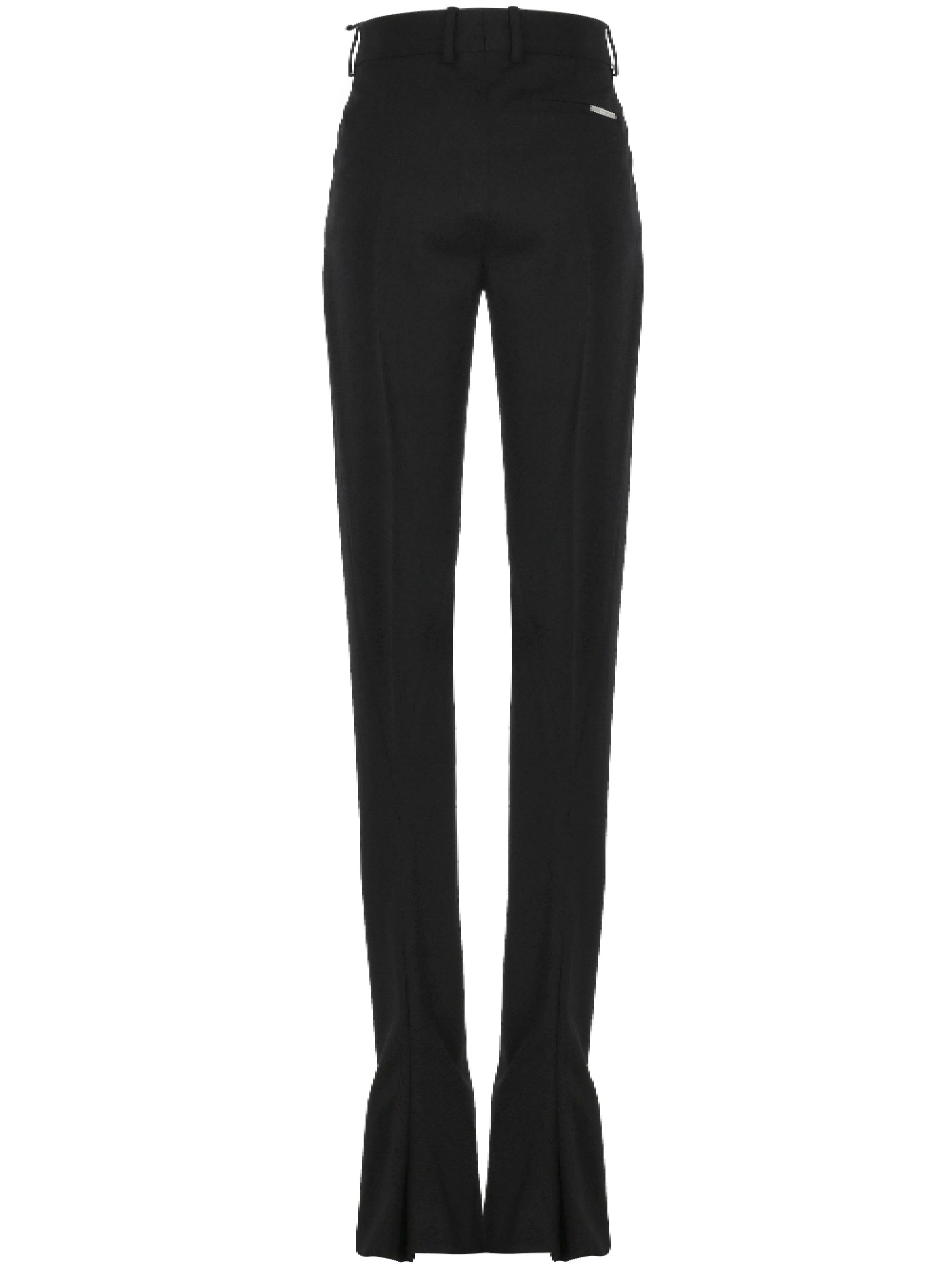 Black concealed front fastening two side inset pockets rear welt pocket belt loops