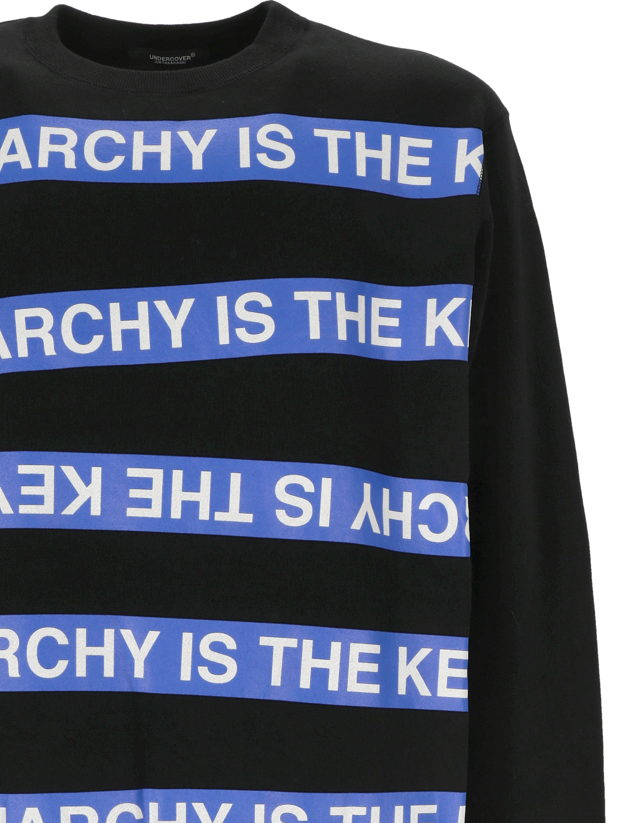blackblue cotton jersey texture slogan print to the front crew neck long sleeves ribbed cuffs and hem
