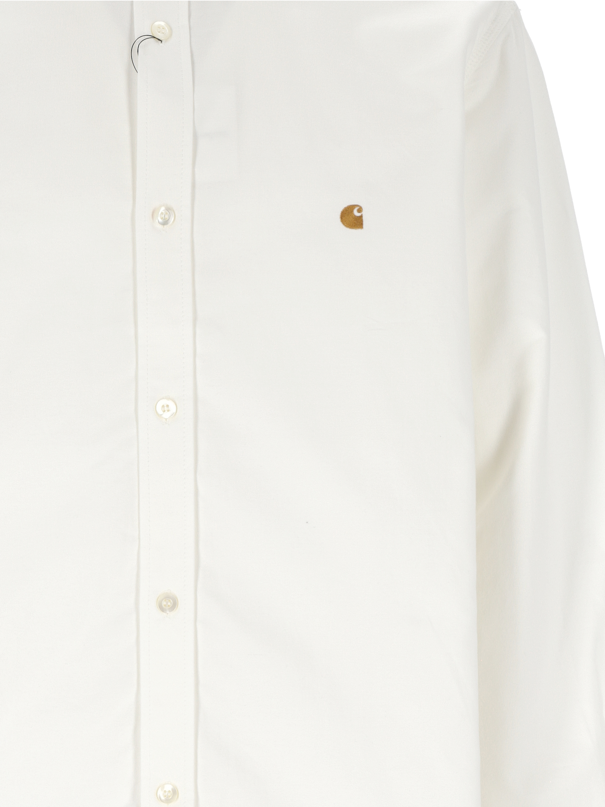 white cotton pique weave front button fastening buttondown collar embroidered logo at the chest long sleeves with buttoned cuffs curved hem