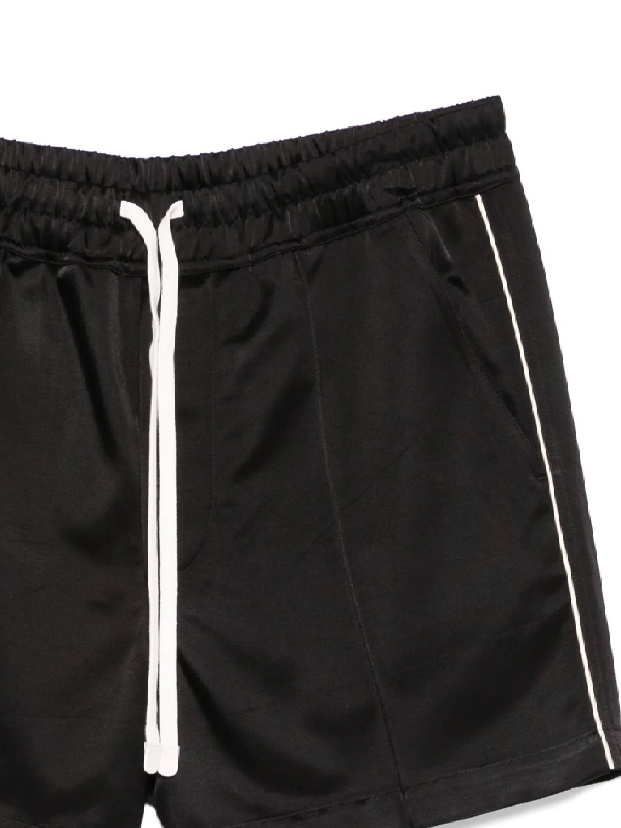 black concealed front button fastening elasticated drawstring waistband two diagonal pockets to the sides two rear patch pockets