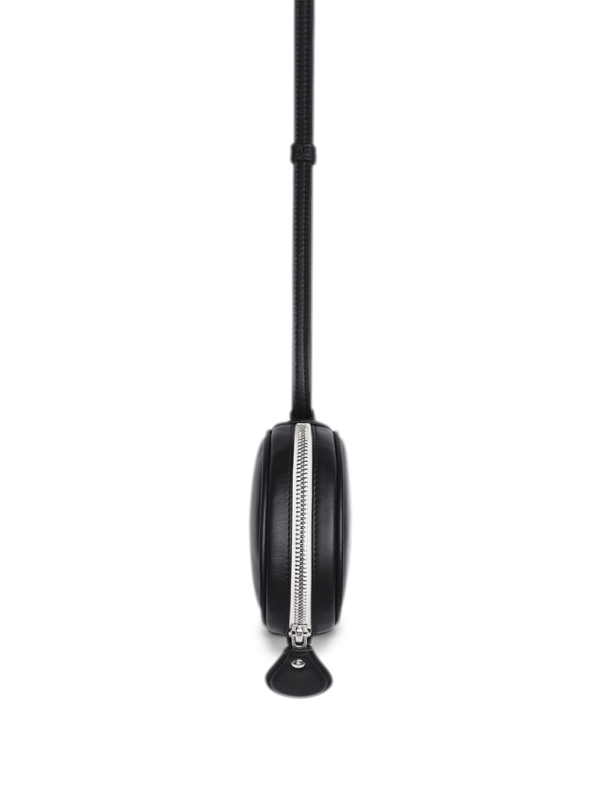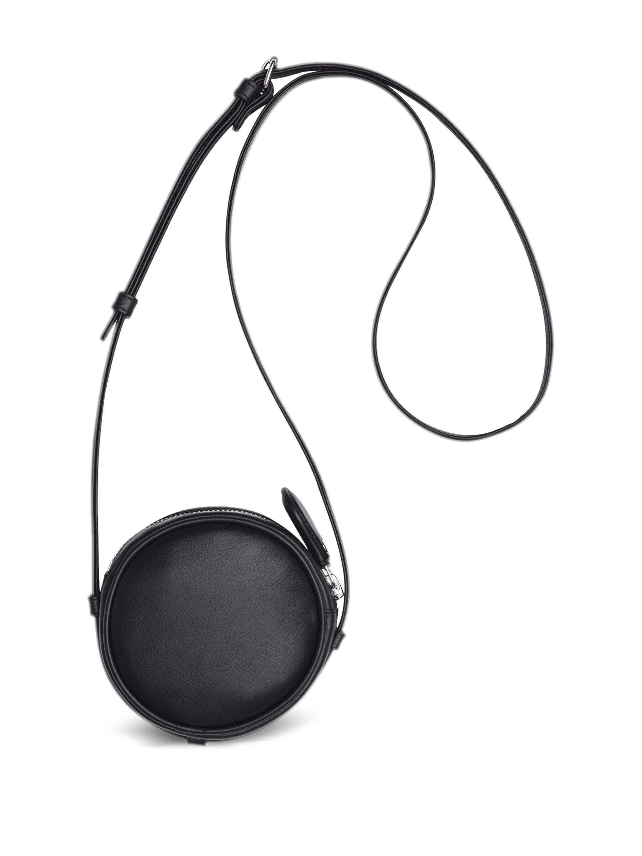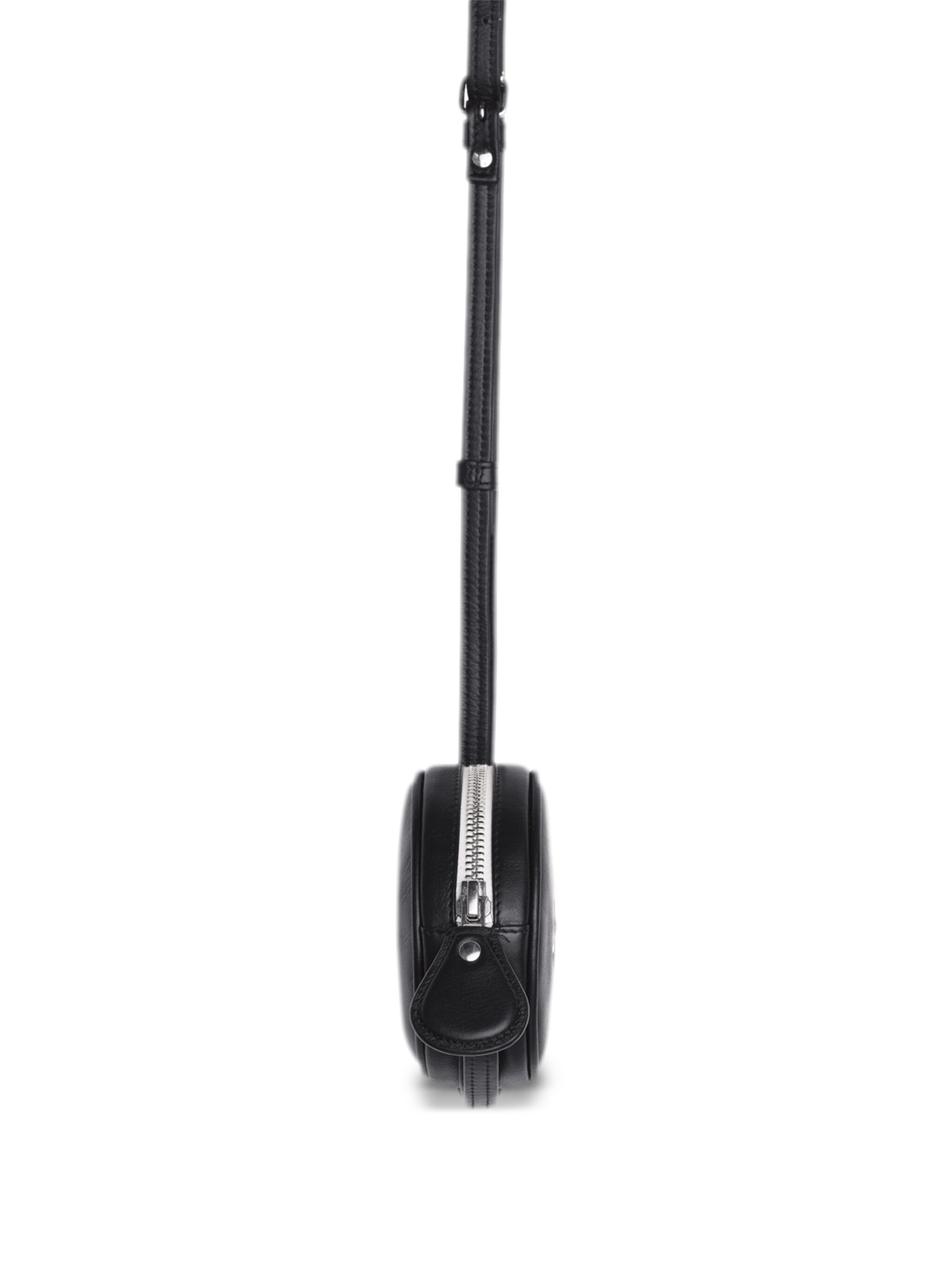Black calf leather logo patch to the front top zip fastening adjustable shoulder strap