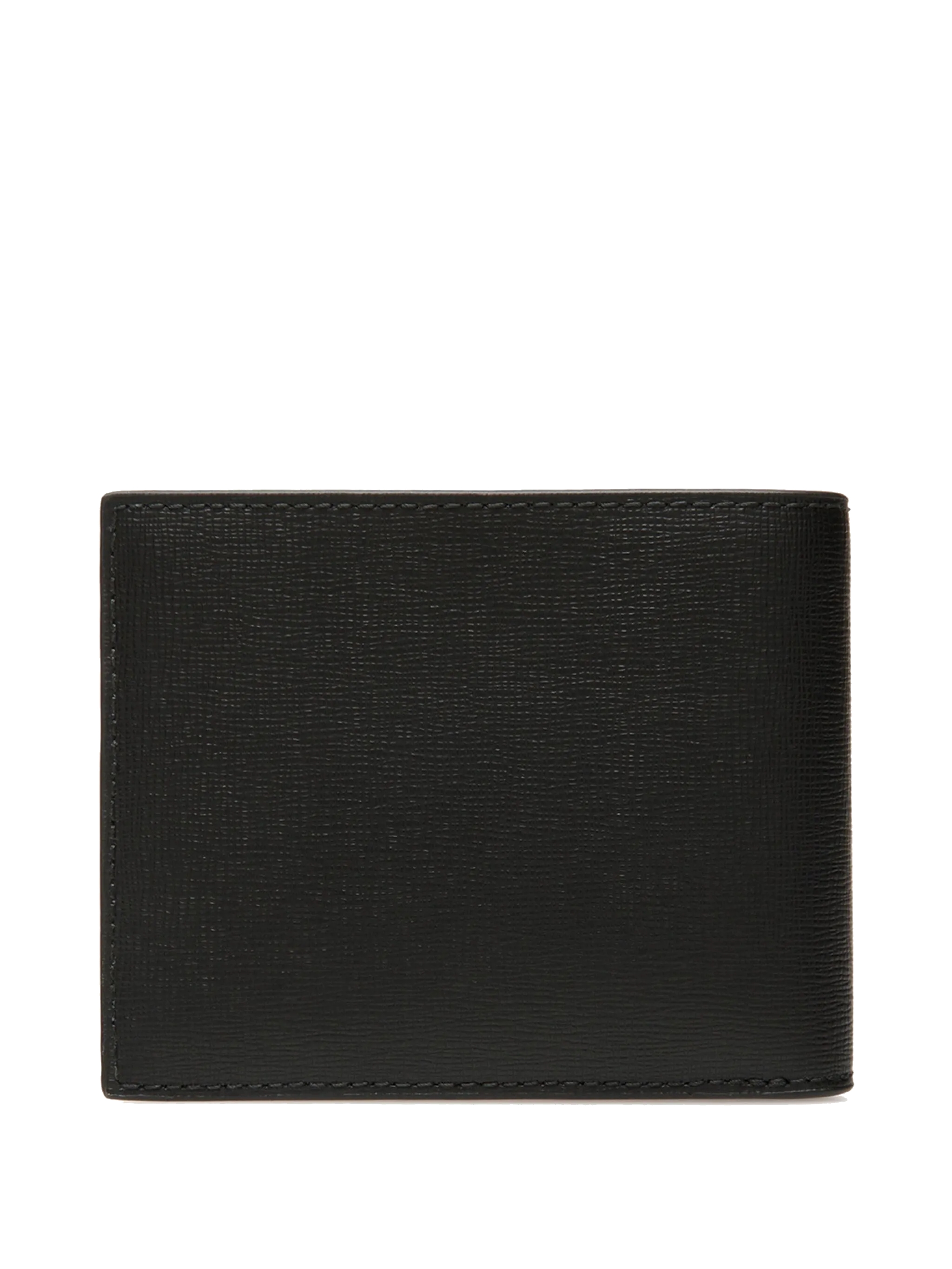blackred calf leather bifold design stripe detailing logo print to the front embossed internal logo internal slip pocket internal card slots