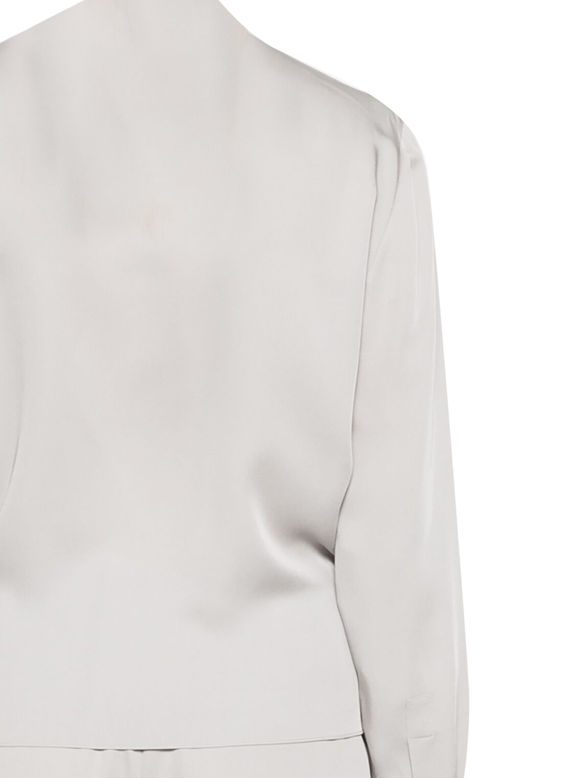 light grey buttoned cuffs plunging Vneck long sleeves cropped