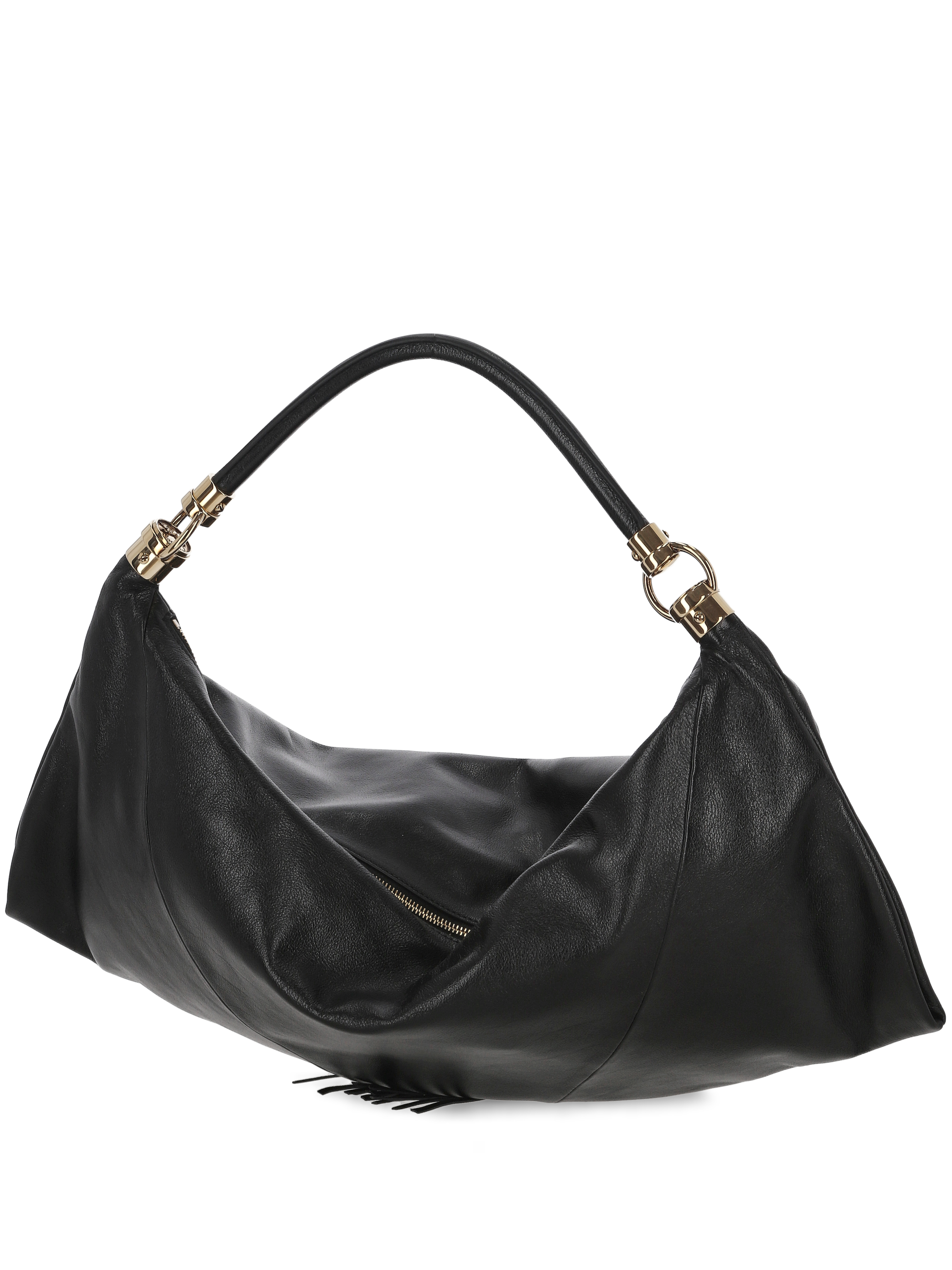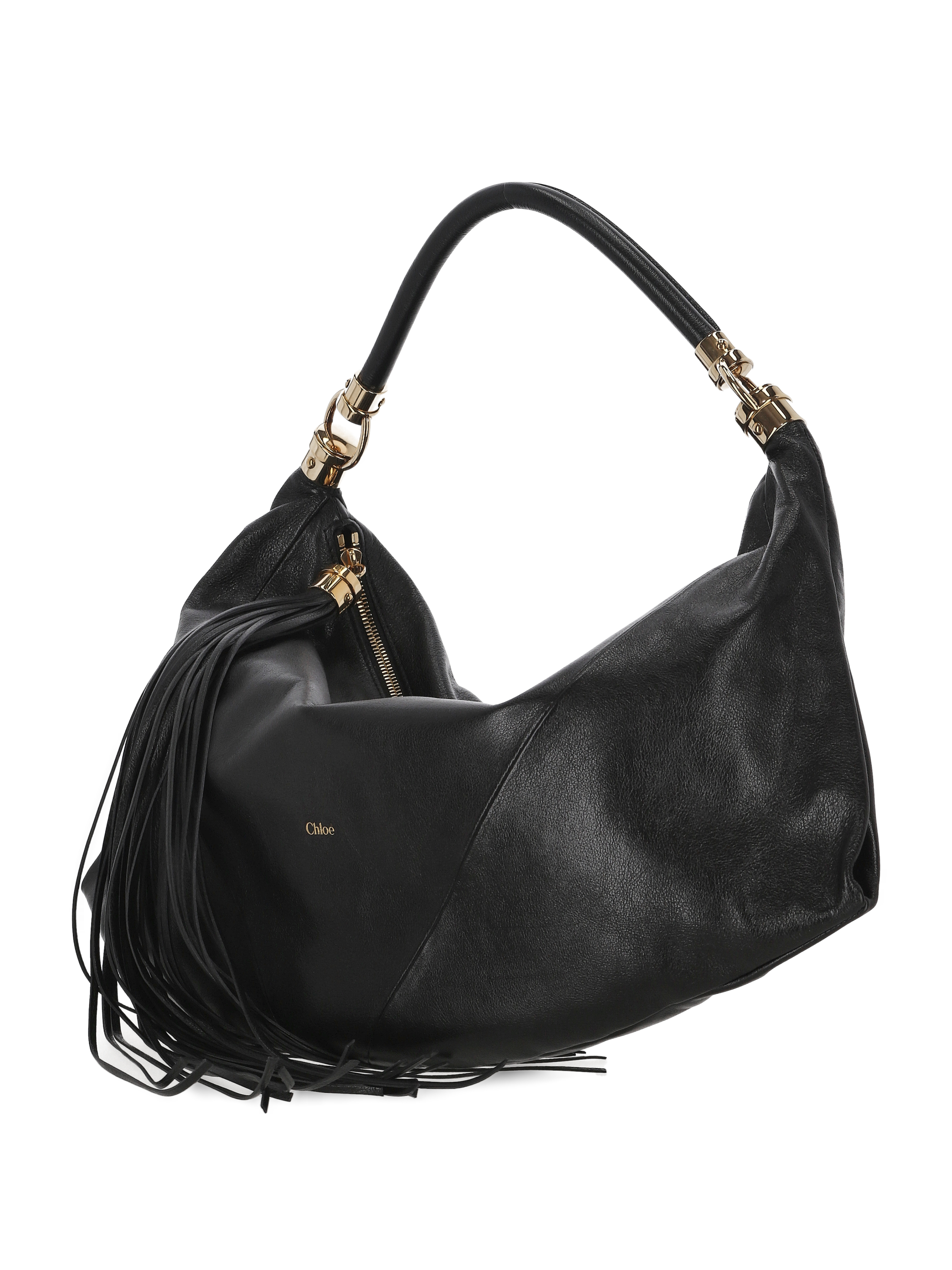 The Chloe Foulard shoulder bag is made of grained buffalo leather with a soft silhouette inspired by the drape of a scarf This roomy Hobo bag is completed with an oversized tassel and the lines iconic Horse medal