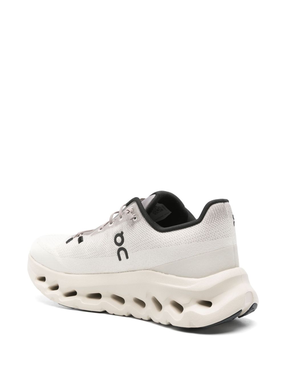 light beige front lace-up fastening chunky rubber sole knitted upper raised logo detail