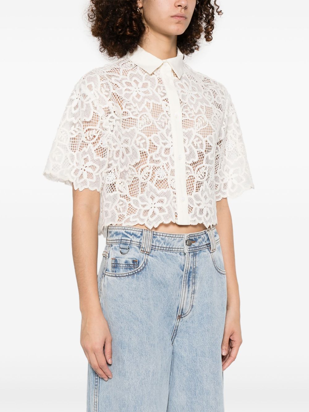 white front button fastening classic collar short sleeves cropped