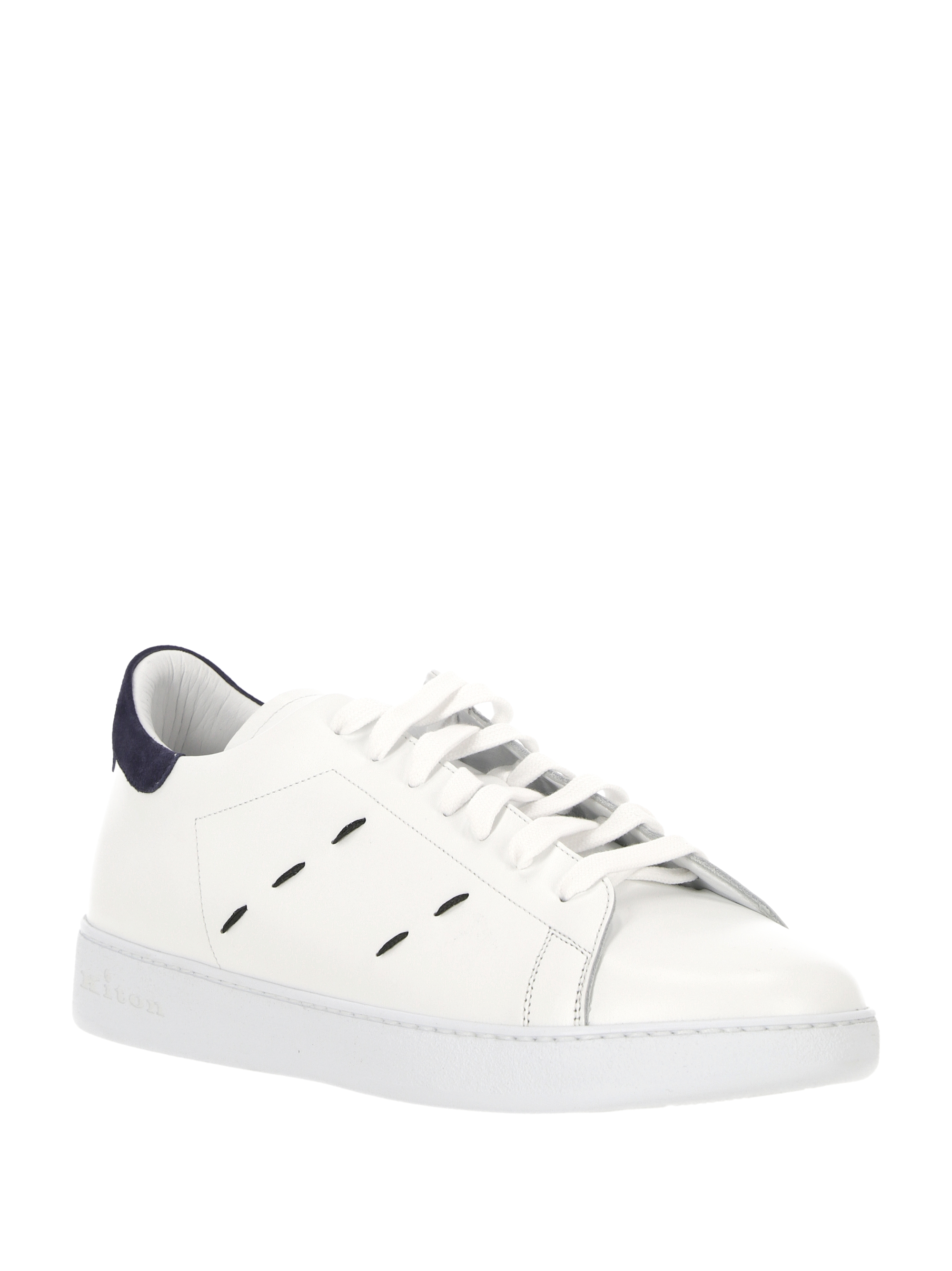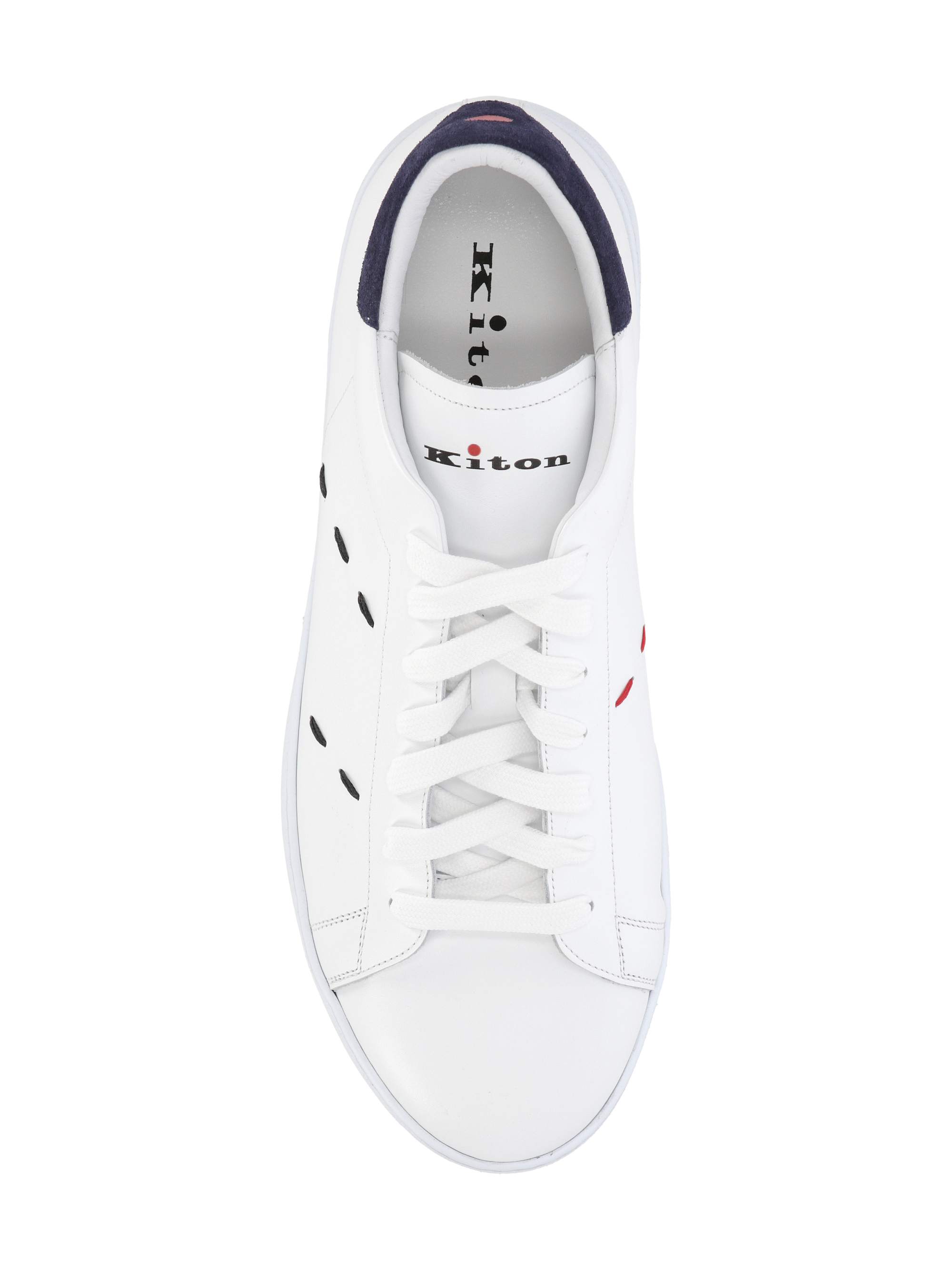 whitenavy blue calf leather front laceup fastening contrasting branded heel counter logoprint tongue round toe branded leather insole flat rubber sole
