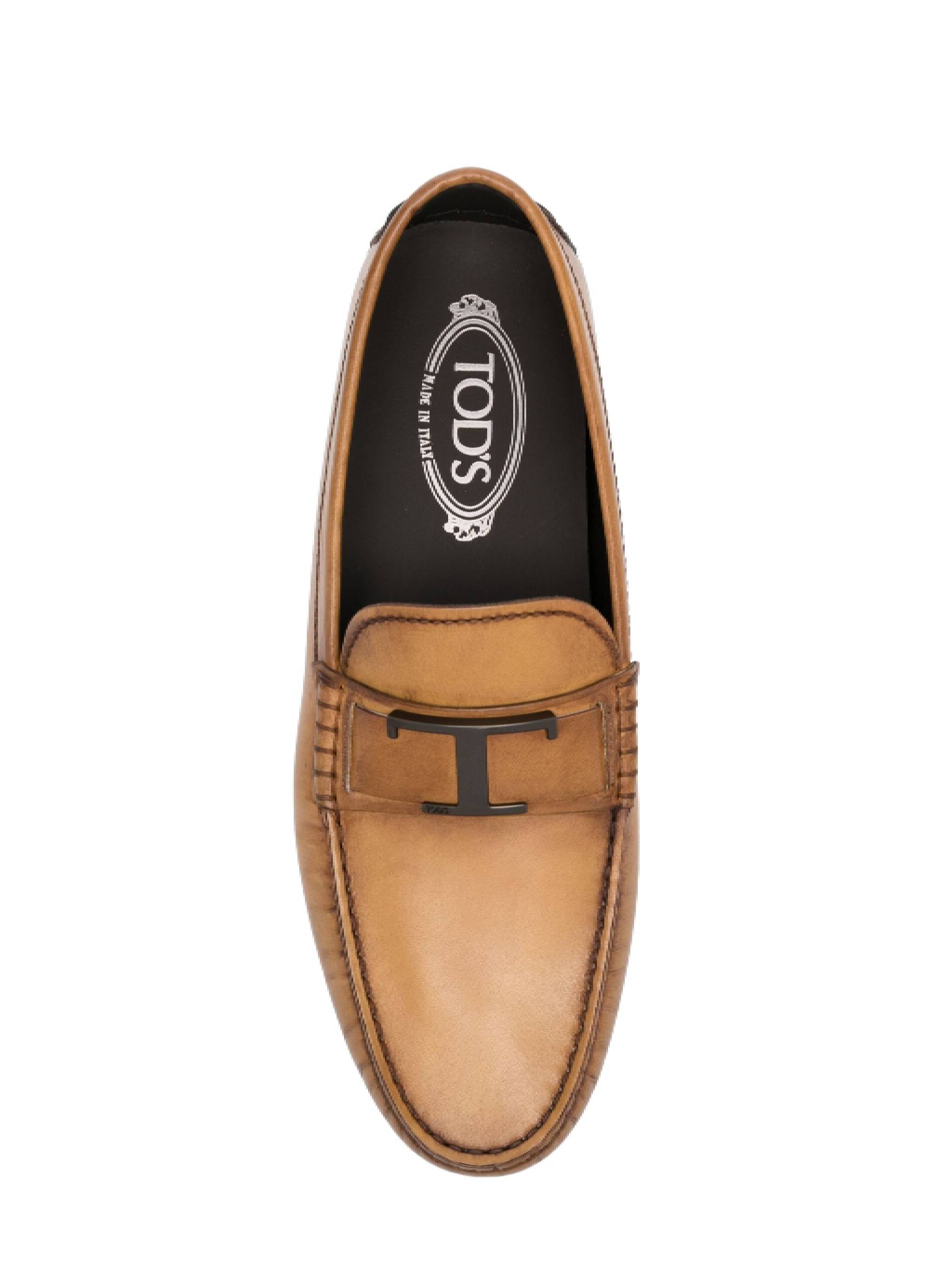 brown calf leather brushed finish T Timeless plaque tonal stitching round toe slipon style branded leather insole pebble heel counter pebble rubber sole