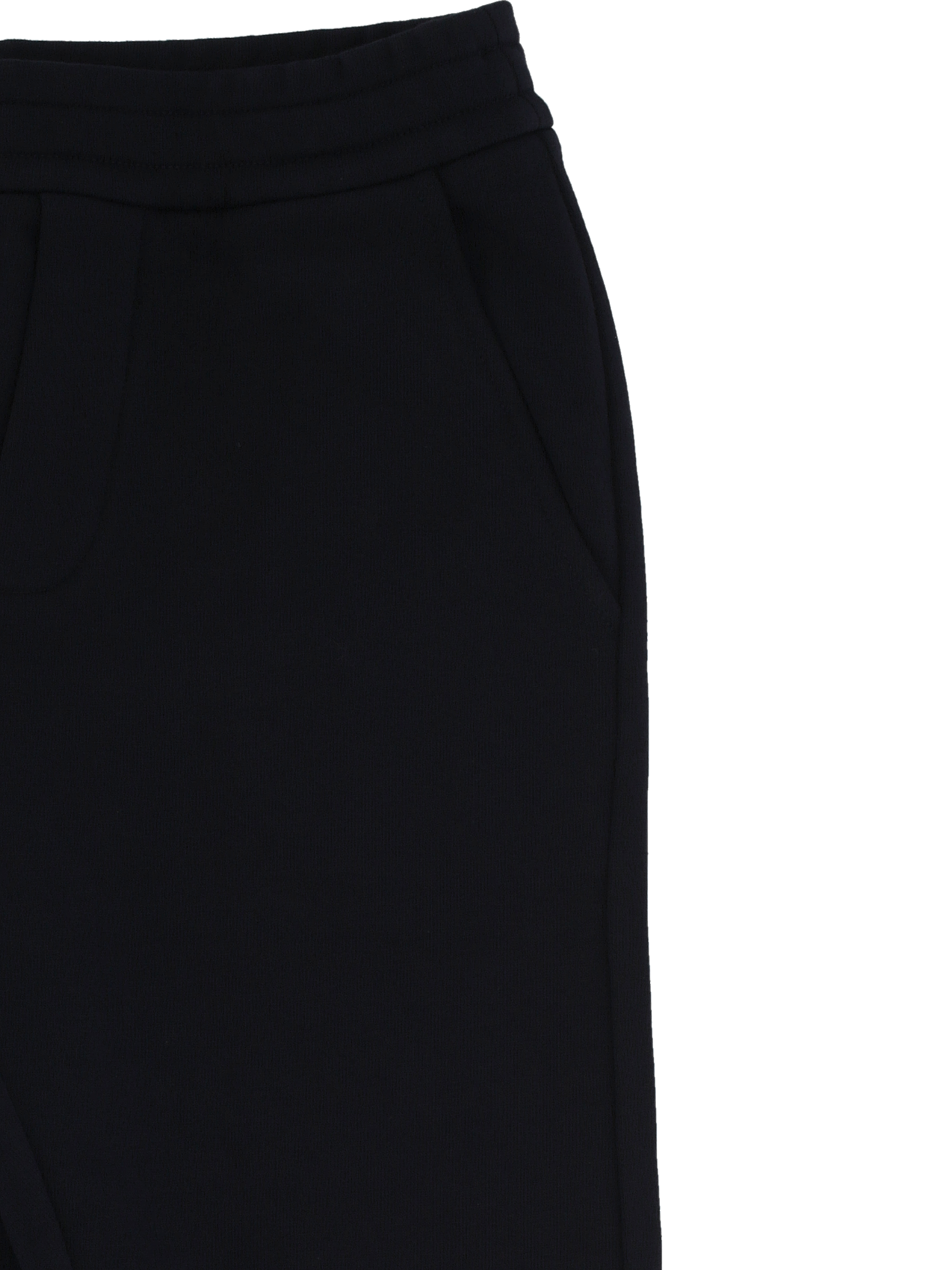 midnight blue cotton jersey texture logo print to the front elasticated waistband two diagonal pockets to the sides elasticated ankles logo patch to the rear
