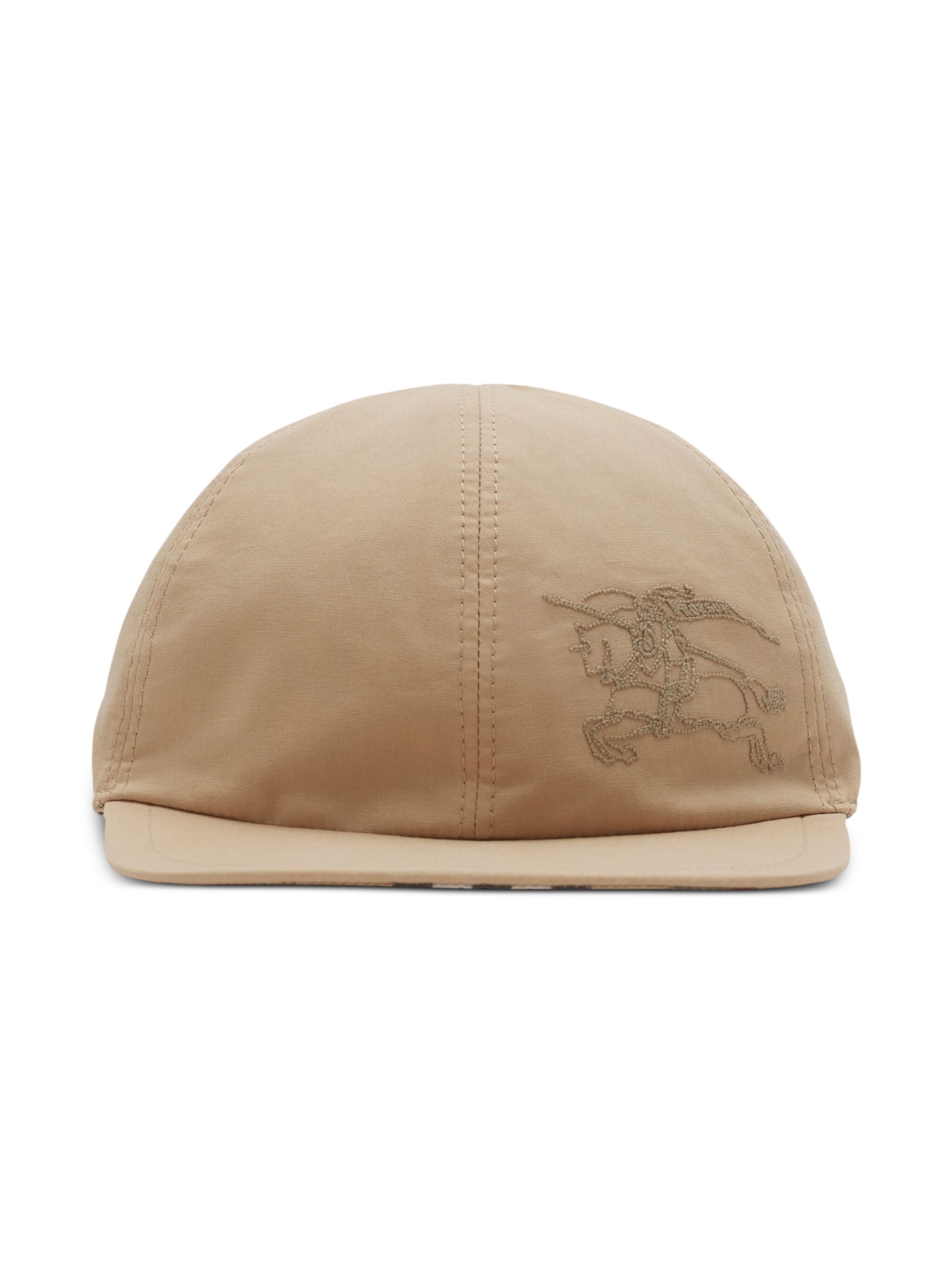 sand beige cotton check pattern round crown flat peak signature Equestrian Knight motif reversible