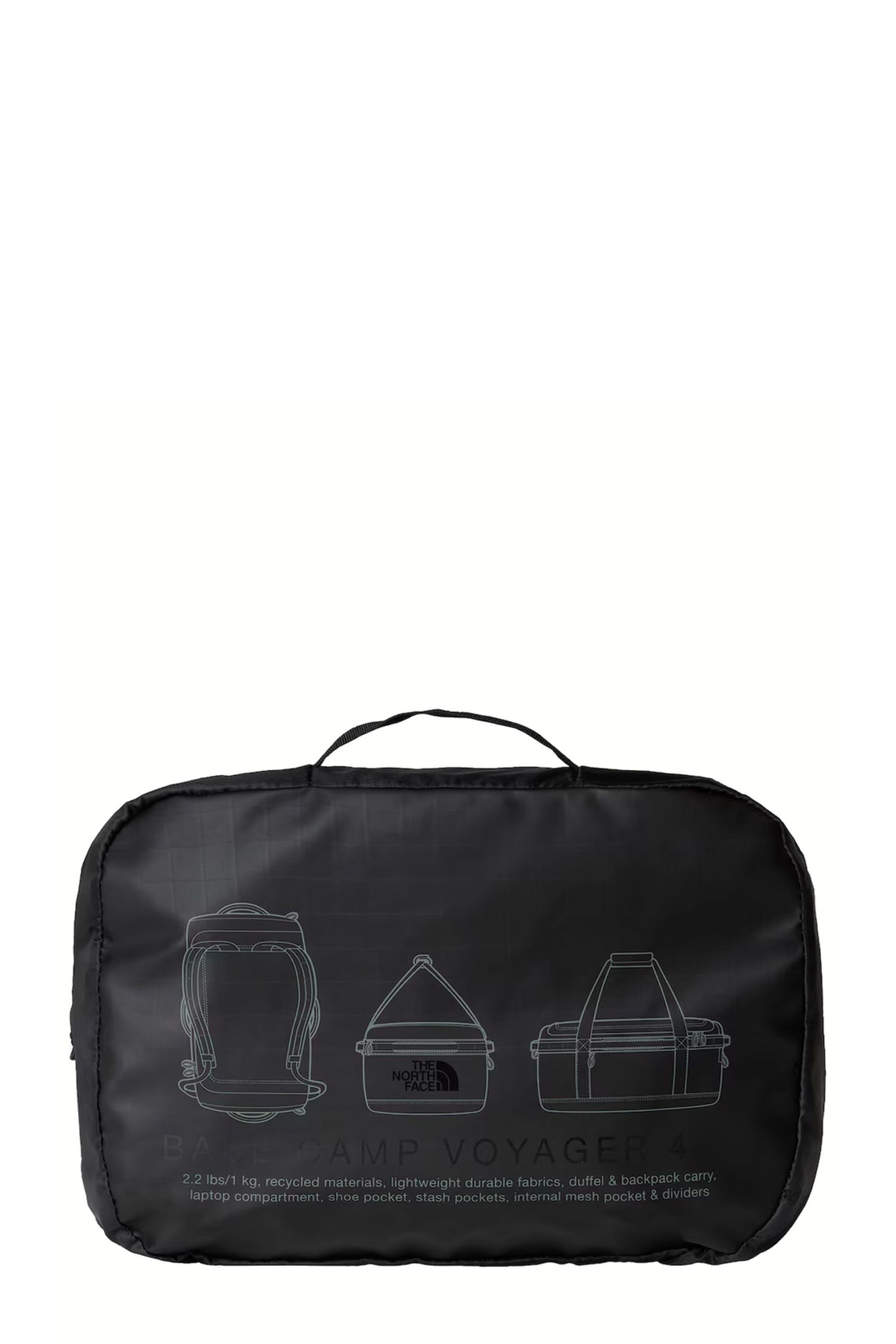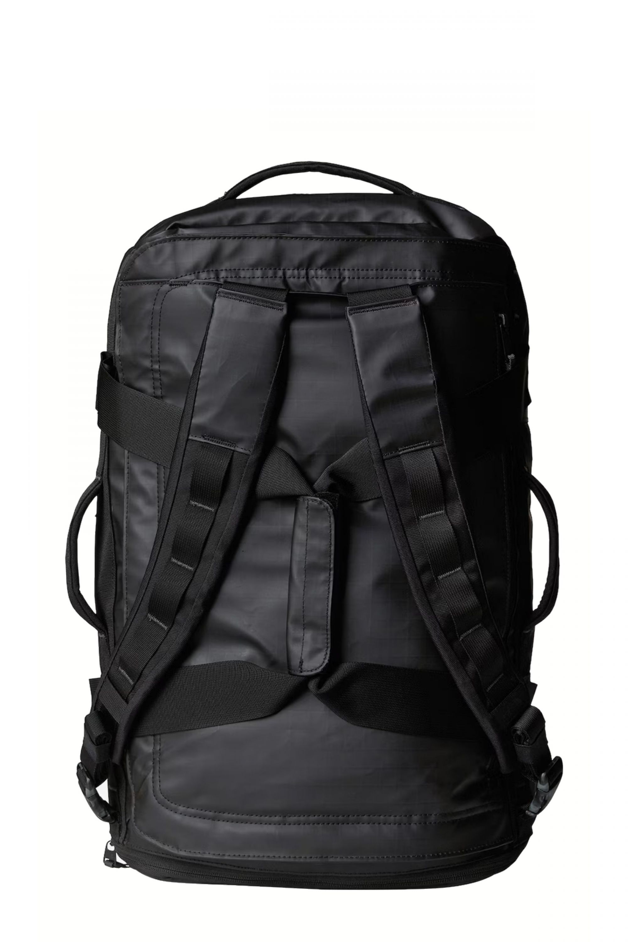 - Base Camp Duffel Bag - The North Phase - Black color - D-zip closure and waterproof zip flap - Side pockets with zip - Padded side handles and carry handles - 4 compression straps - Shoulder straps for function