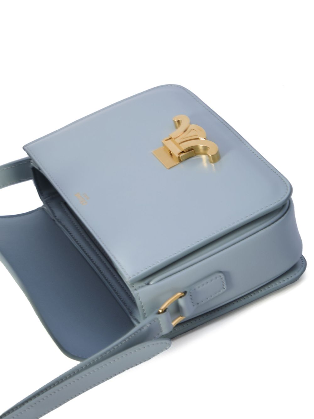 light blue front flap closure adjustable shoulder strap internal zip-fastening pocket internal slip pocket
