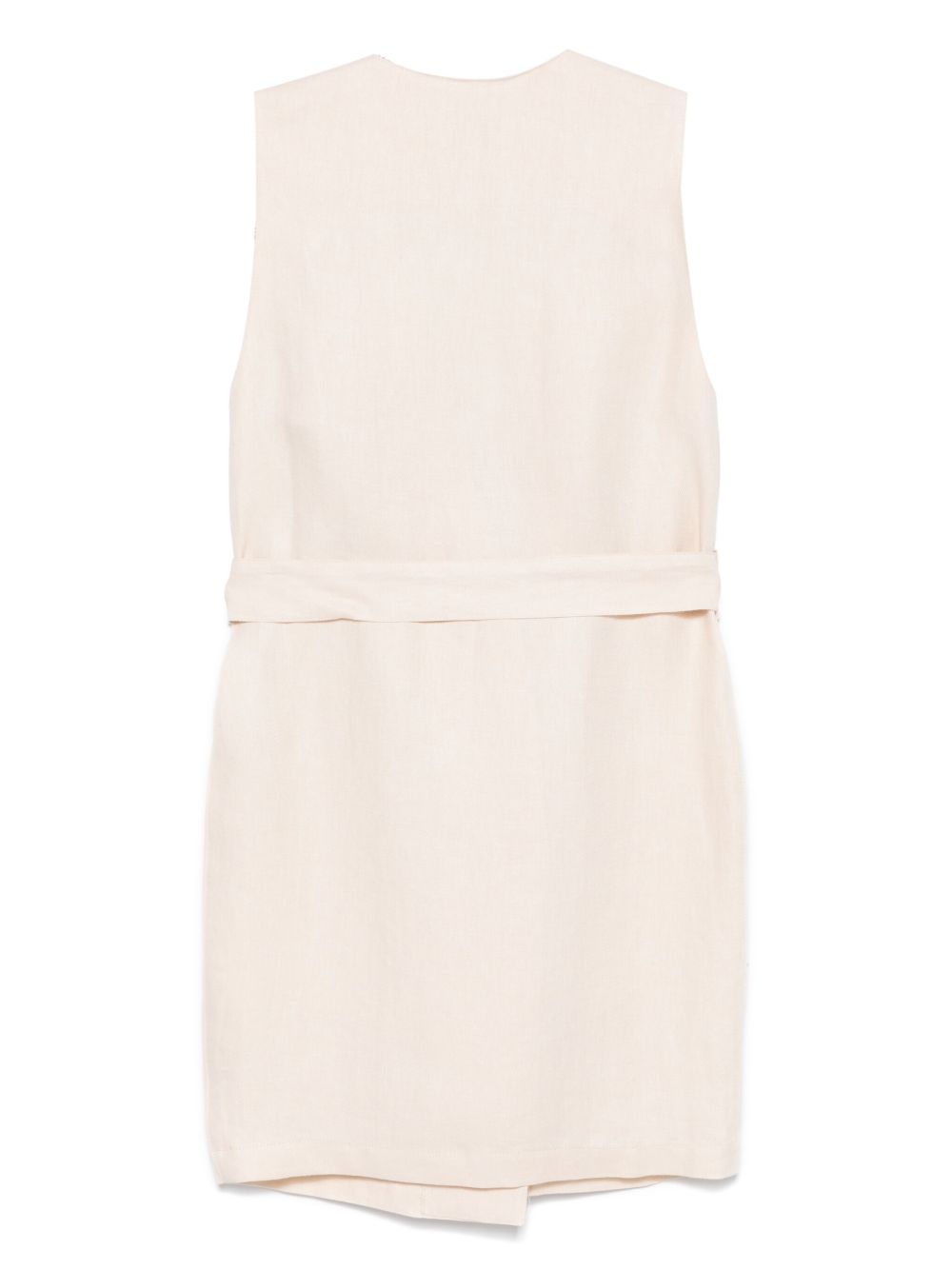 almond beige detachable and adjustable waist belt two front jetted pockets V-neck sleeveless