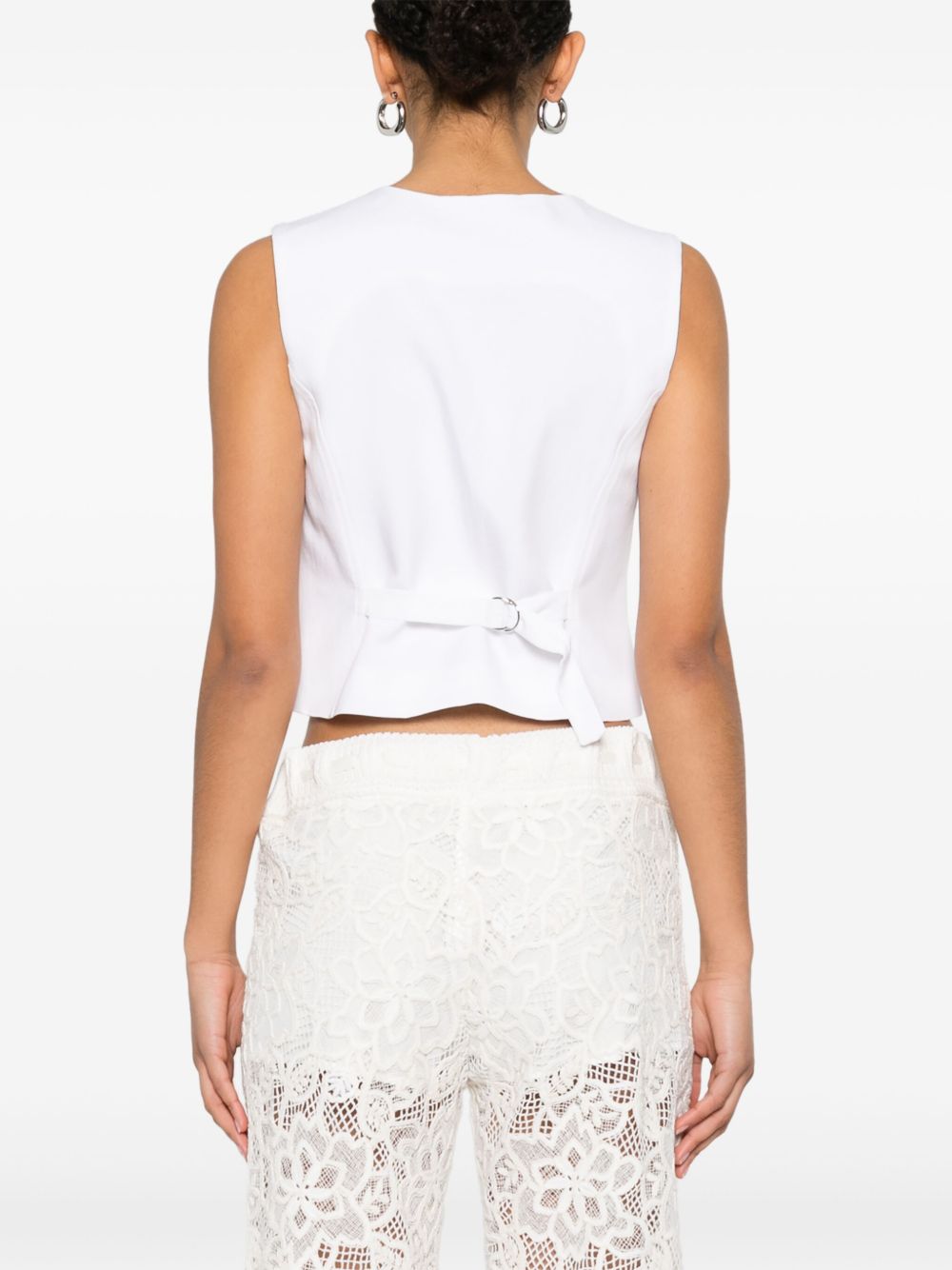 white front button fastening adjustable strap to the rear V-neck straight hem