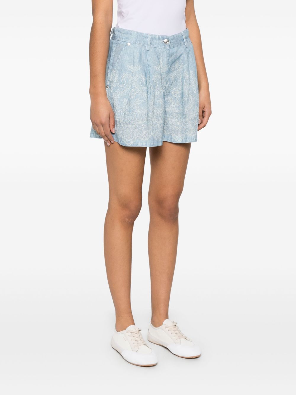 sky blue concealed fly and button fastening two side slash pockets belt loops pleat detailing