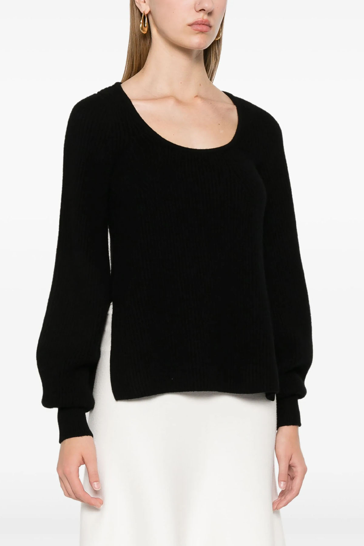 'Hermus' cashmere sweater with ribbed sweater, round neckline, side splits, long cuffed sleeves.