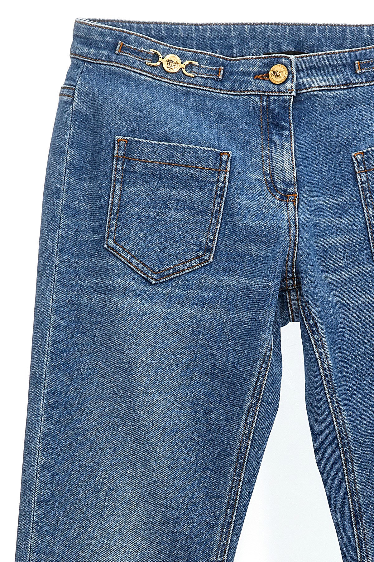 KIDS Stretch cotton denim jeans, 'Medusa' detail at the waist, zip and button closure, pockets.