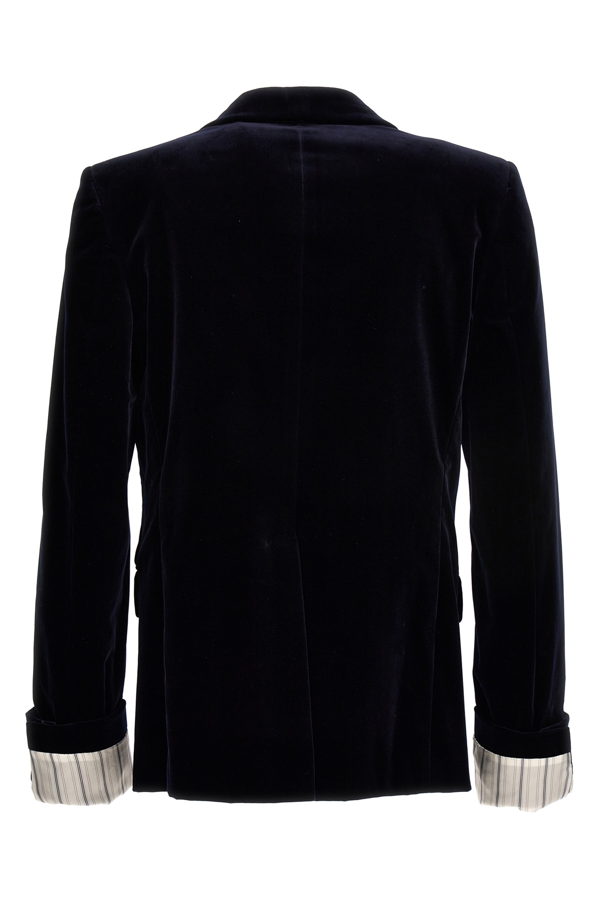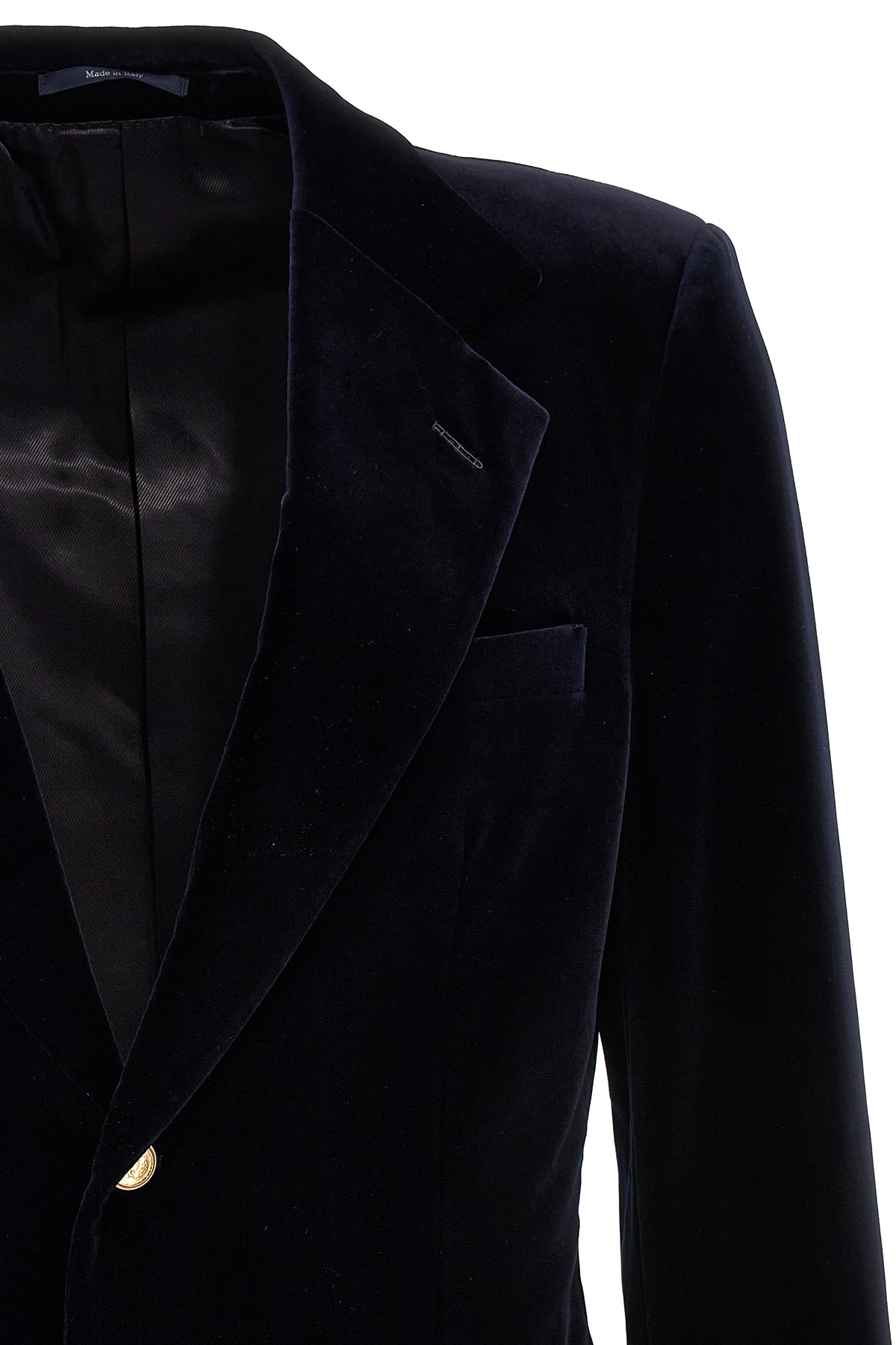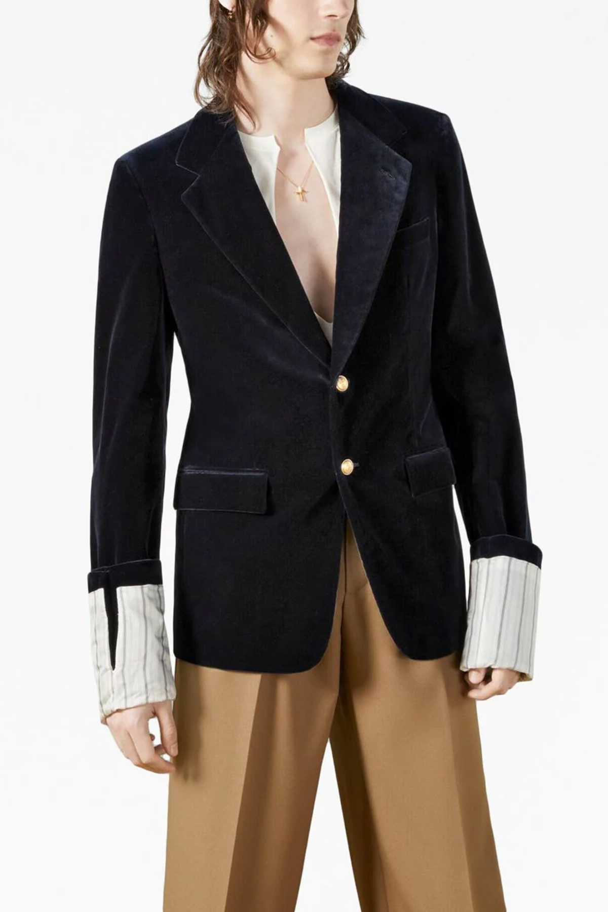 Velvet blazer jacket with single-breasted style with button closure, pockets, long sleeves with turned-up detail and back split.