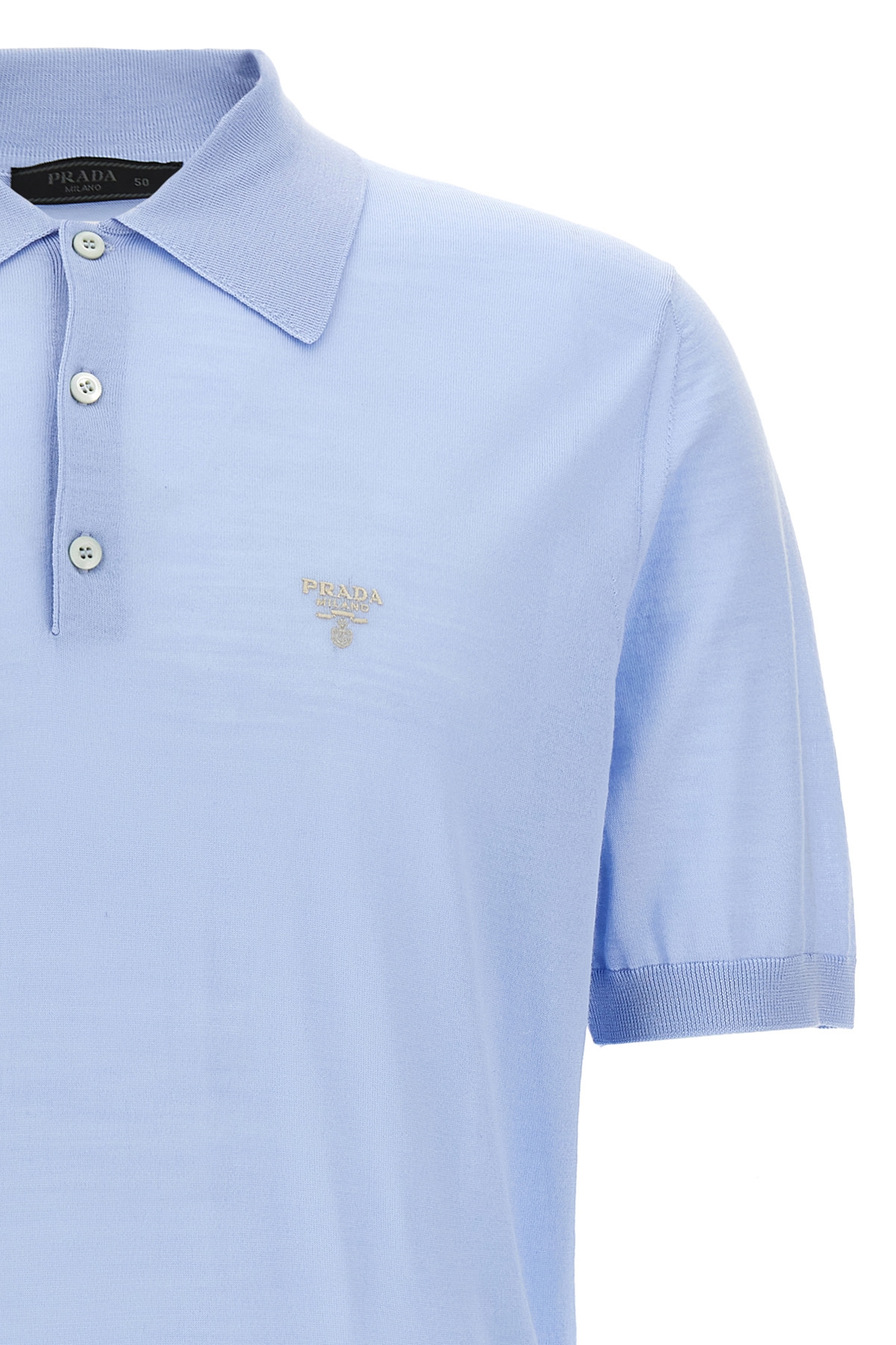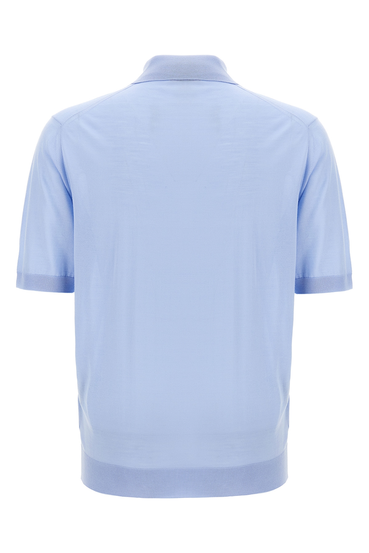 Virgin wool polo shirt with front logo embroidery, collar and buttons, short sleeves.