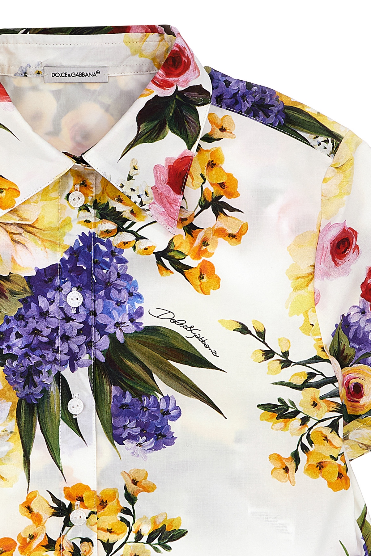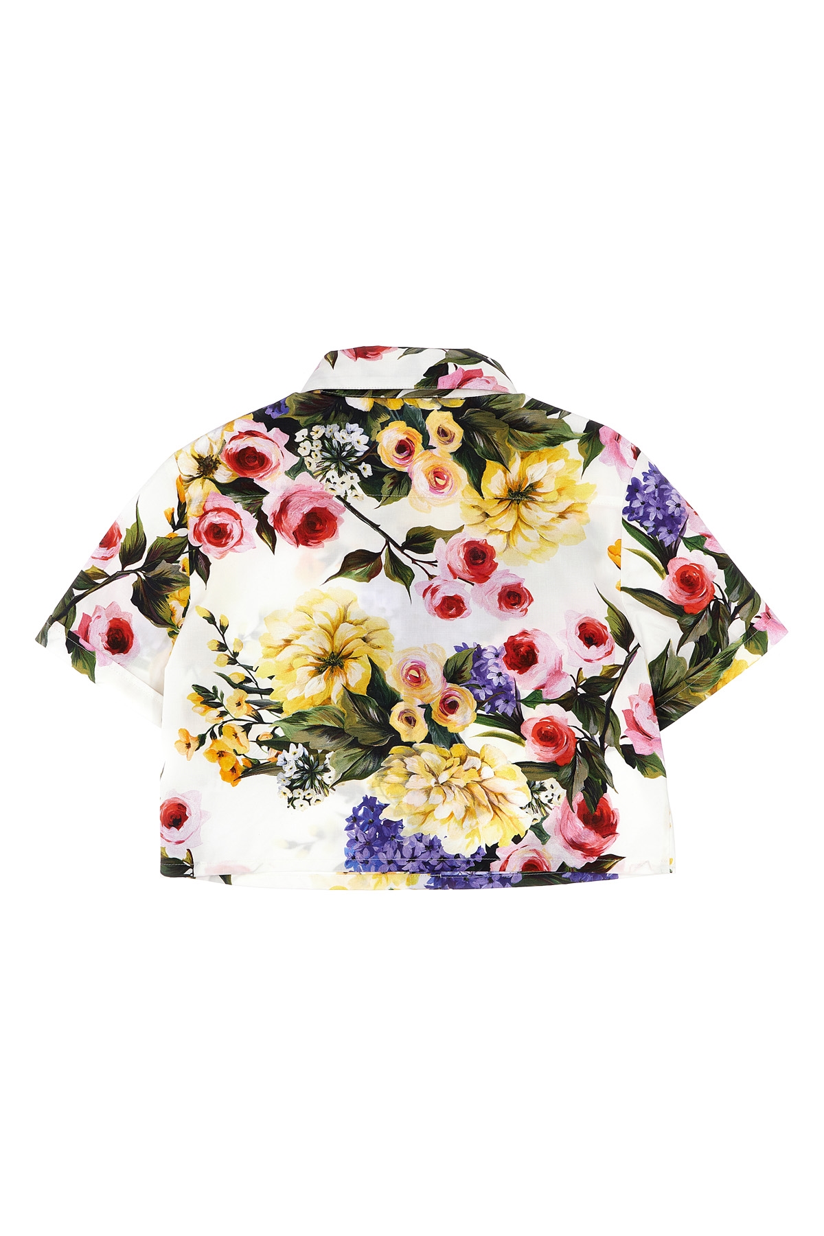 KIDS Cotton poplin shirt with all-over 'Giardino' print, button closure, and short sleeves.