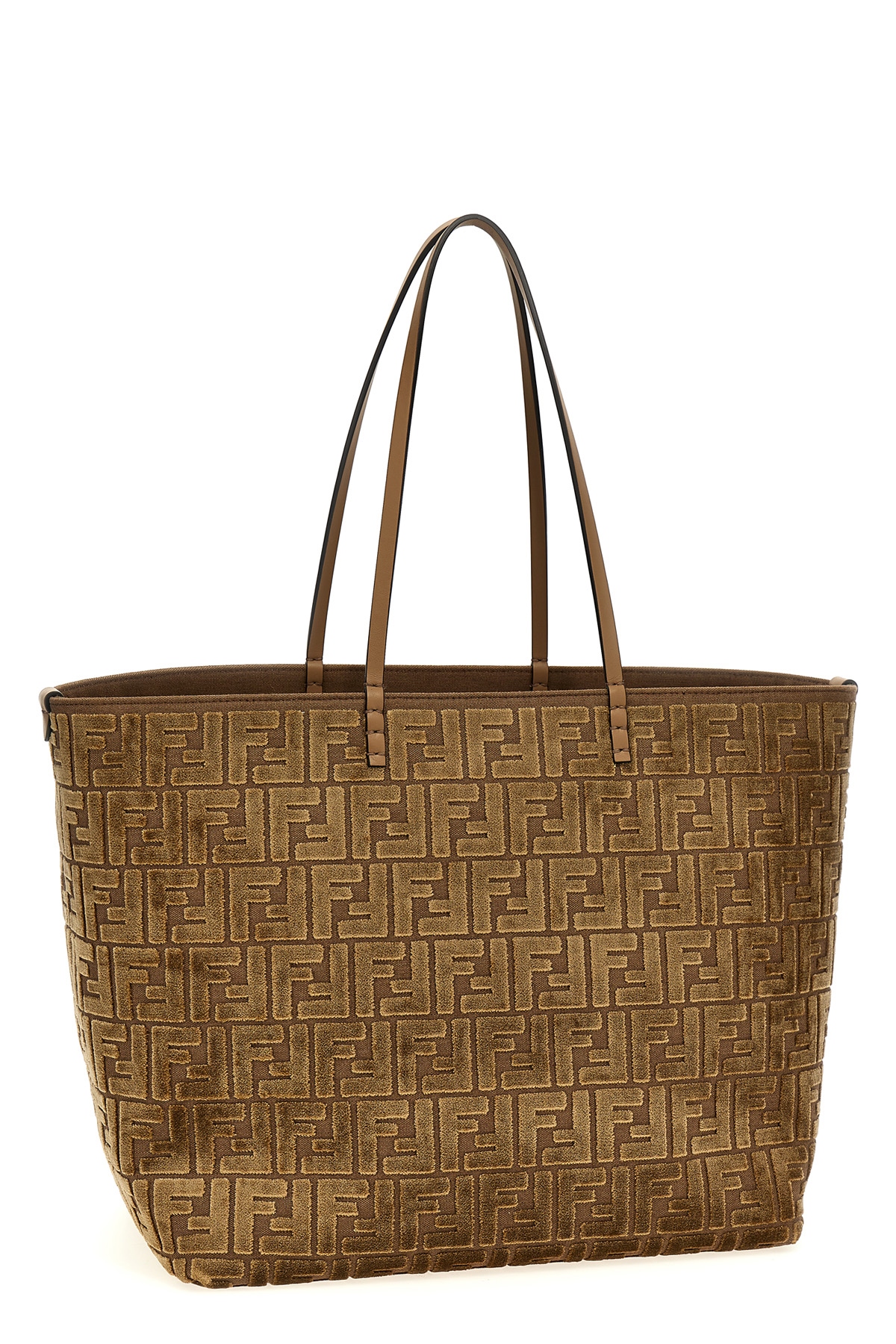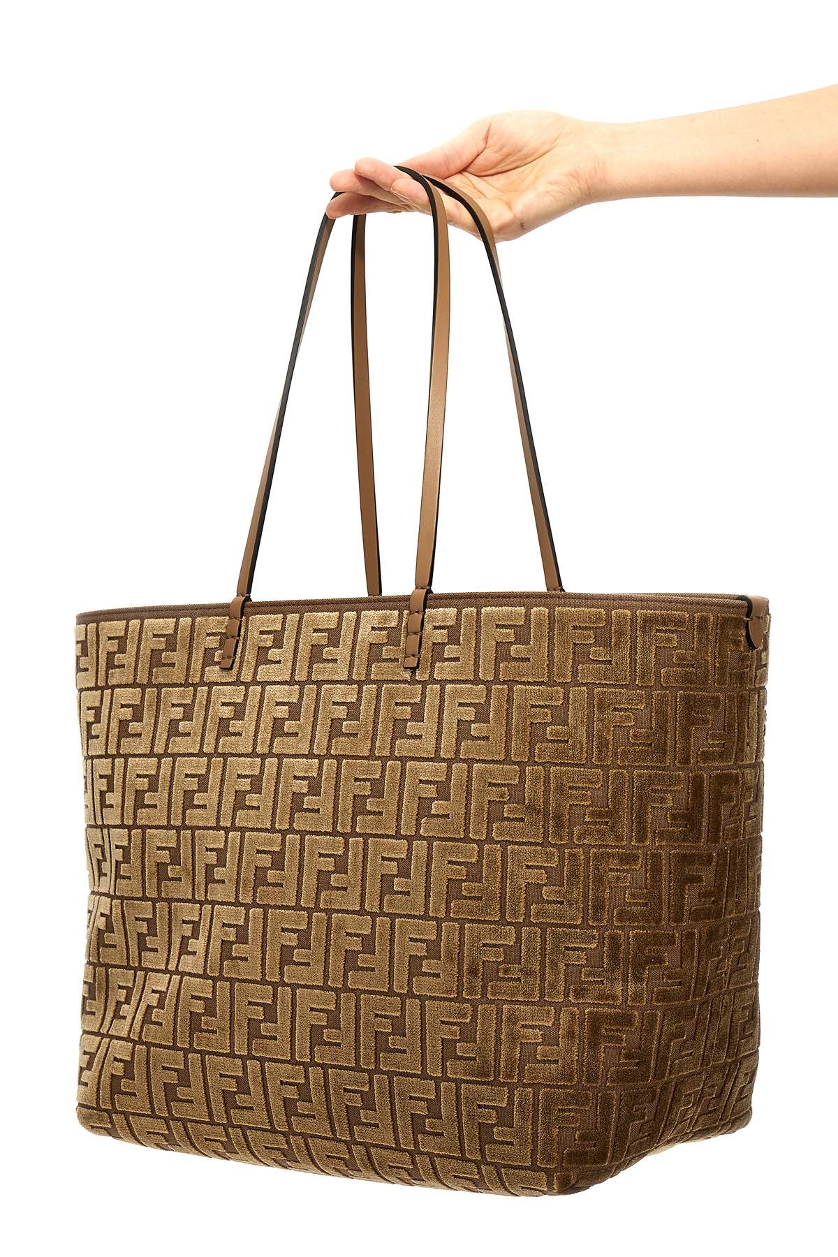 Roll Large' reversible shopping bag in all-over embossed FF jacquard velvet and solid canvas, double fixed leather handle, removable inner leather pocket.
