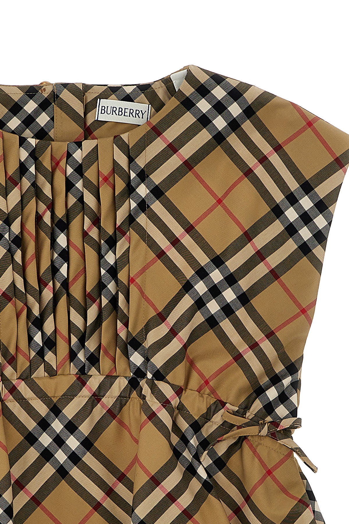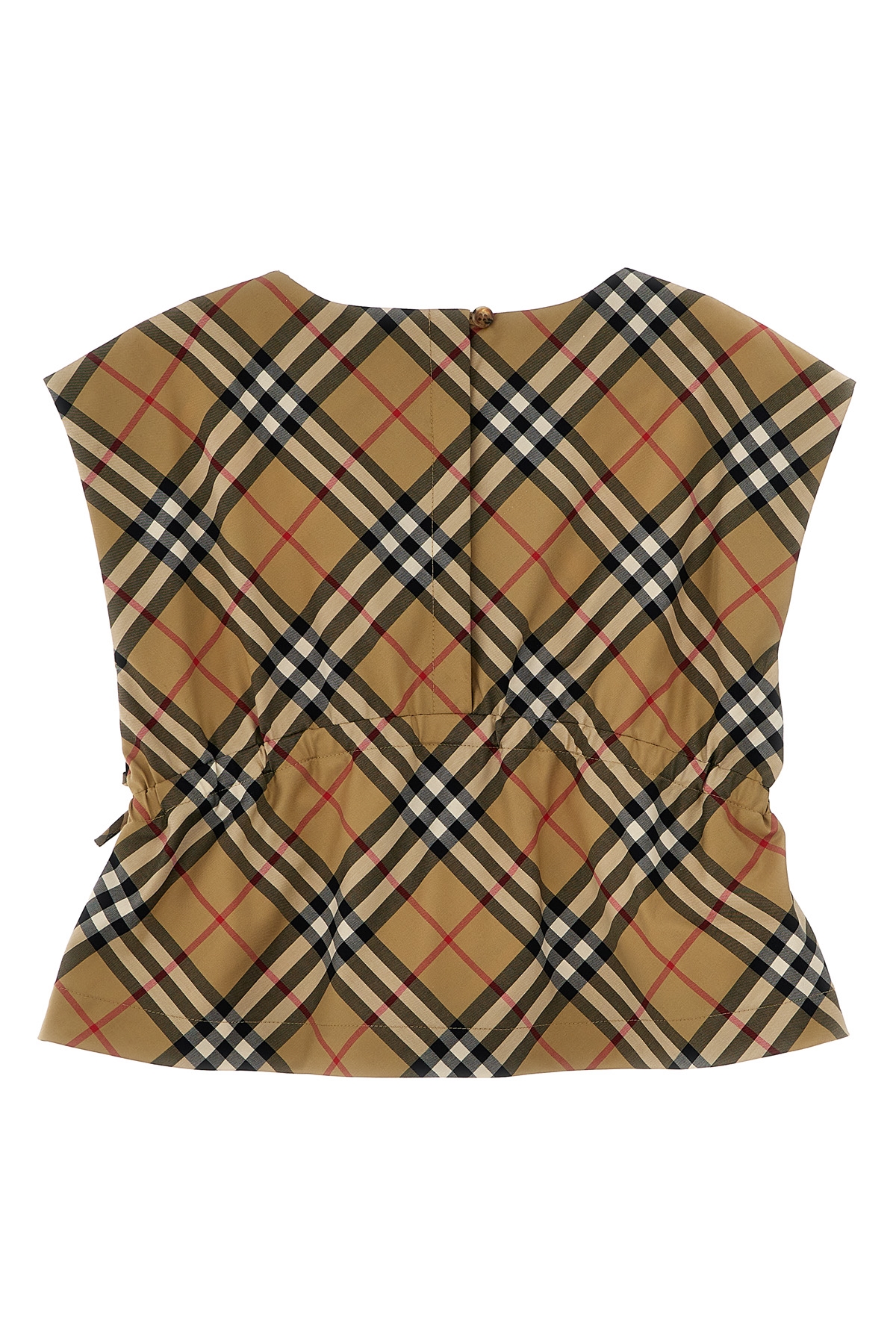 KIDS 'Trevelle' check print stretch cotton top with adjustable elastic waistband with bows, crew neck, pleated plastron, sleeveless.