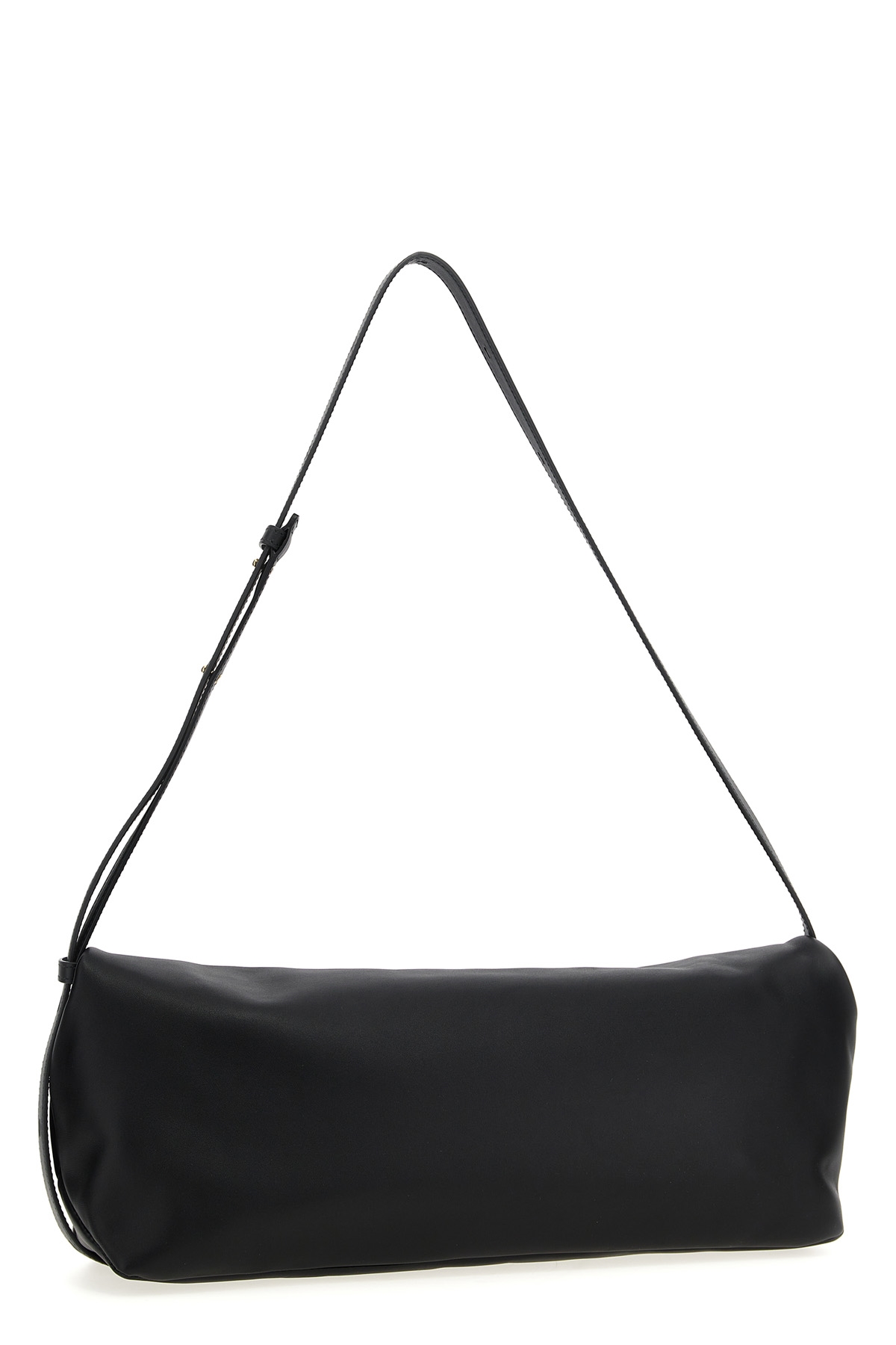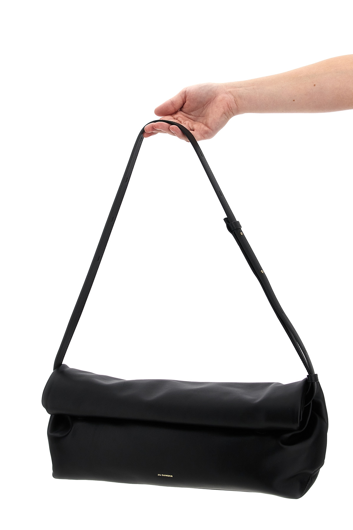 'Rollup' medium leather crossbody bag with adjustable and removable shoulder strap, embossed logo, magnetic closure.