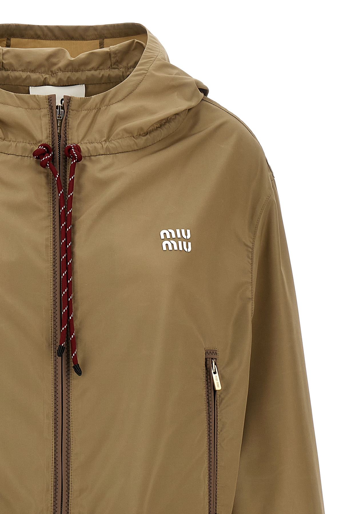 Tac Canvas jacket, front rubber logo, crop model, hood with adjustable drawstring, zip closure, pockets, long sleeves with elastic cuffs, drawstring on the hem.