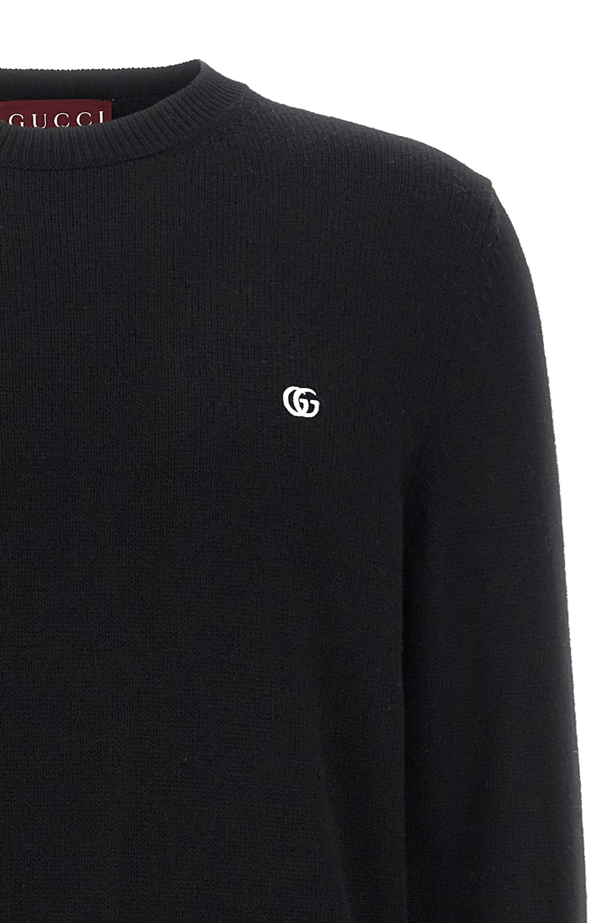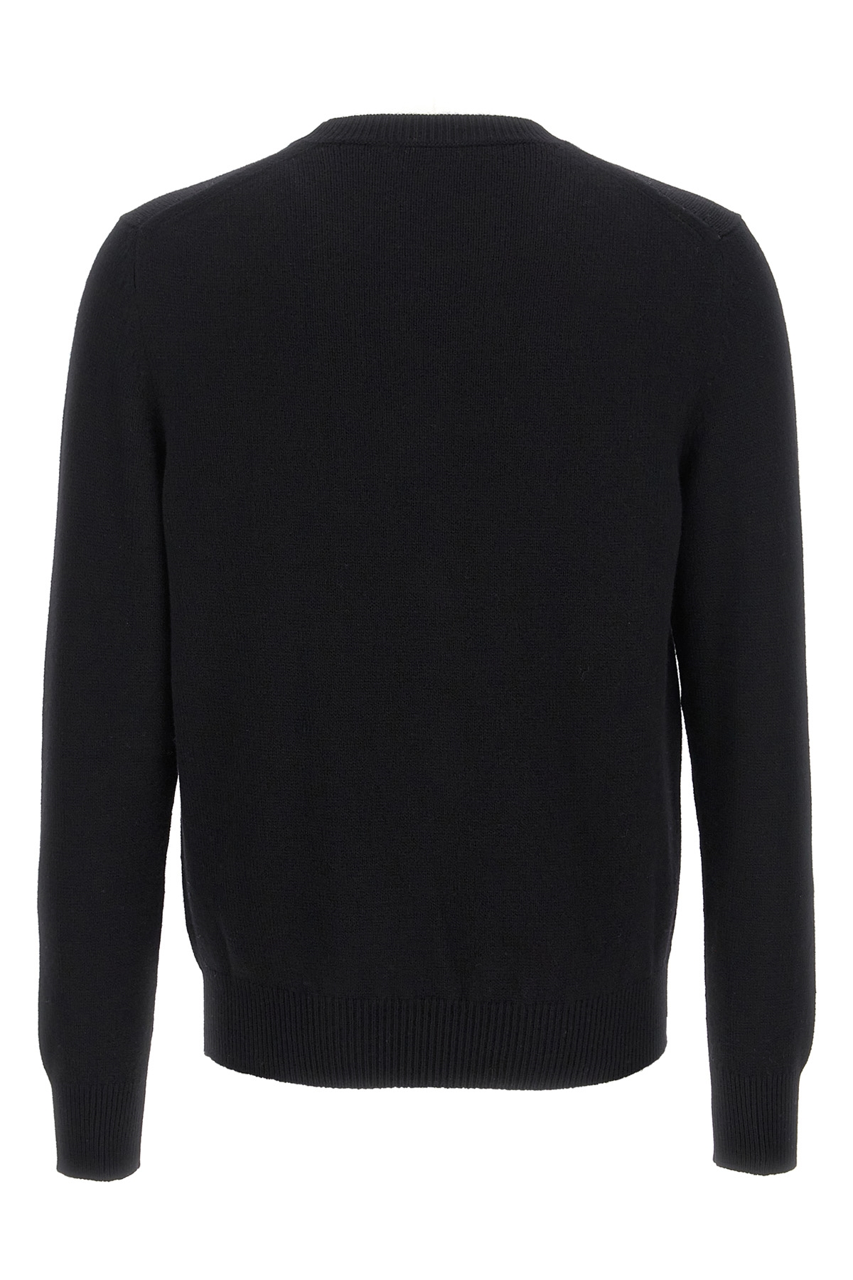 Wool and cashmere blend sweater with contrast front logo embroidery, crew neck, long cuffed sleeves and dropped shoulders.