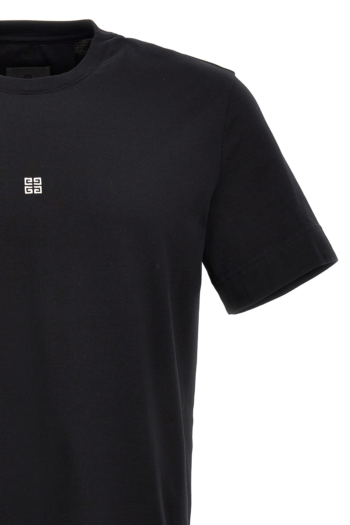 Cotton, crewneck T-shirt with embroidered logo on the front and back, and short sleeves.