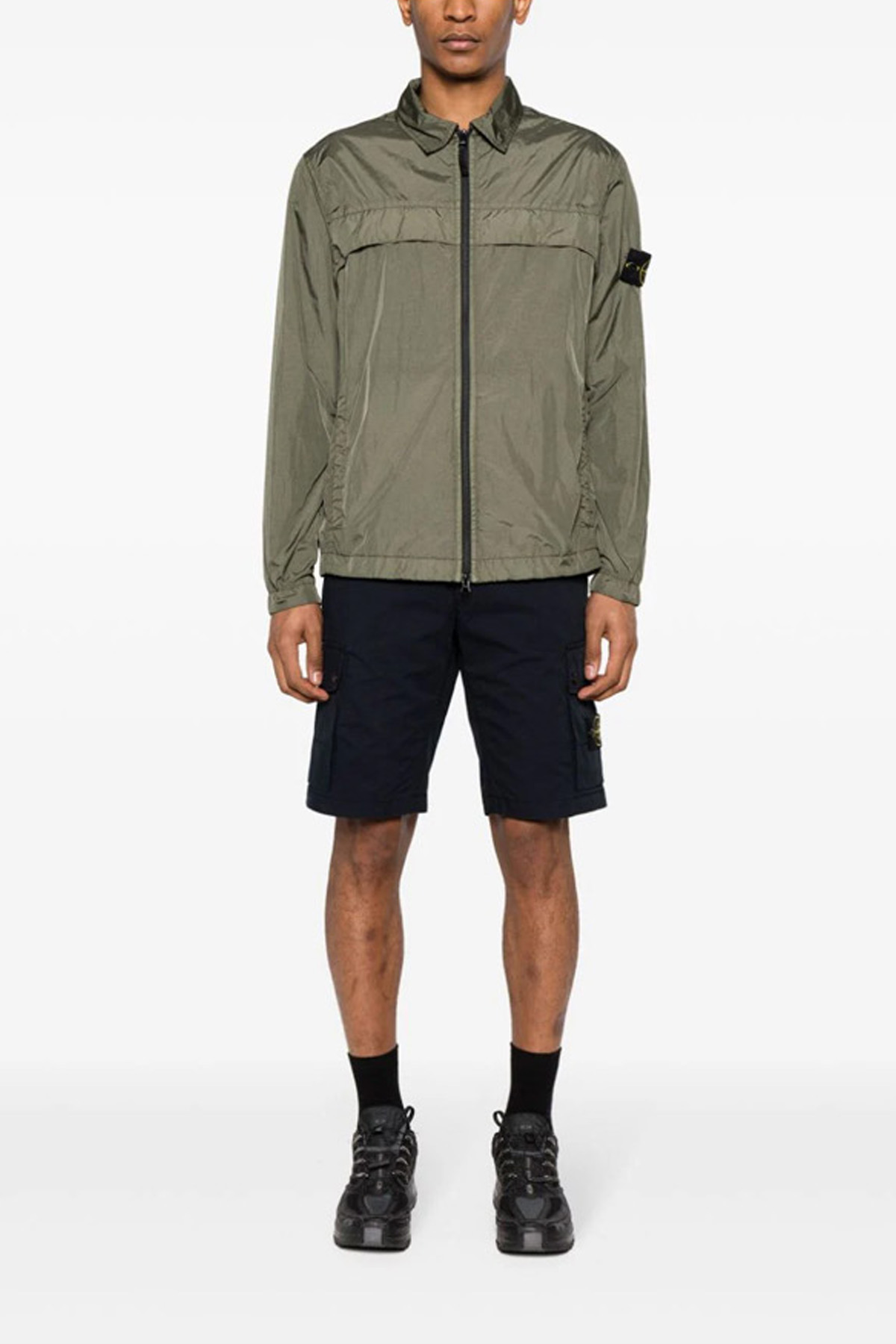 Cargo cotton bermuda shorts with logo badge application, zip and button closure, pockets.