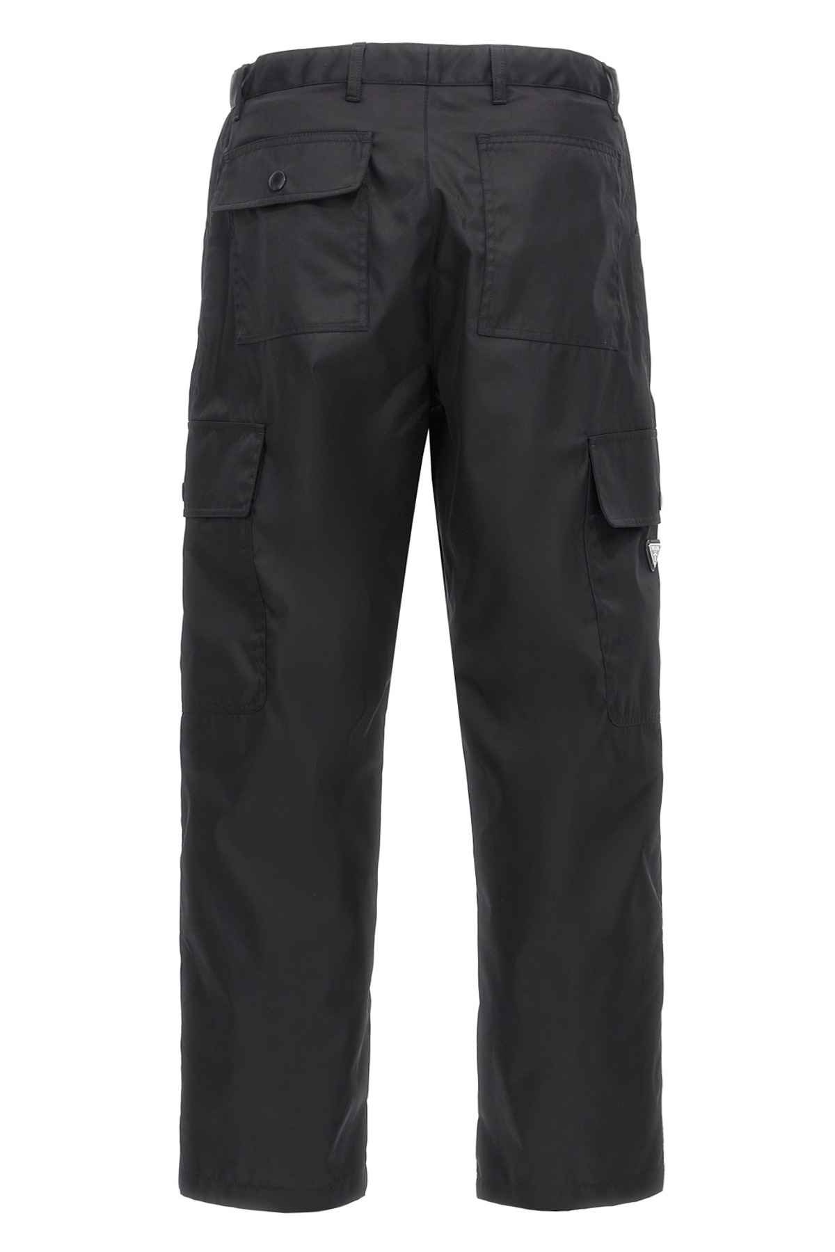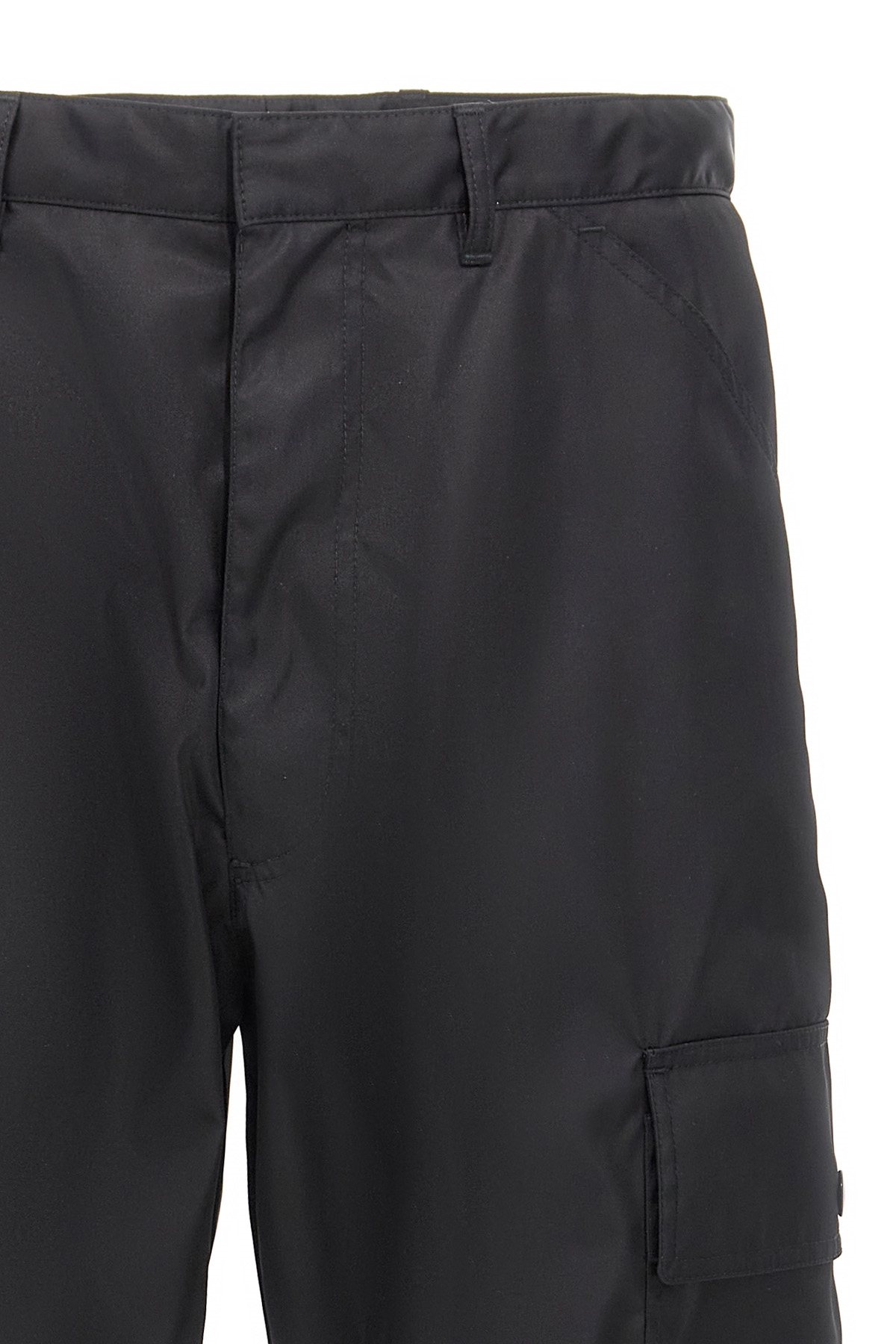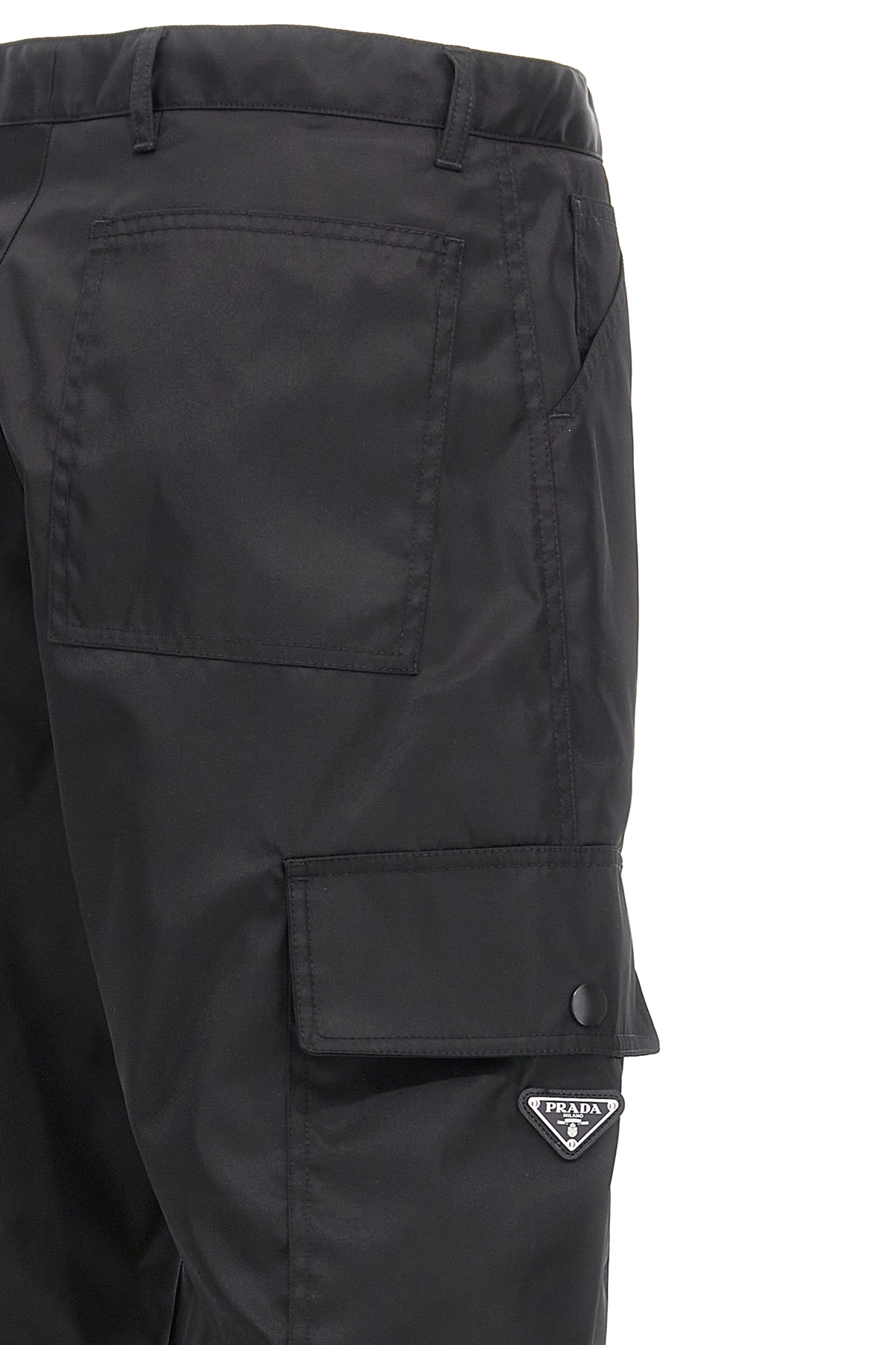 Re-Nylon fabric pants, cargo model with triangle metal enamel logo on pocket, hook and button zip closure, pockets.