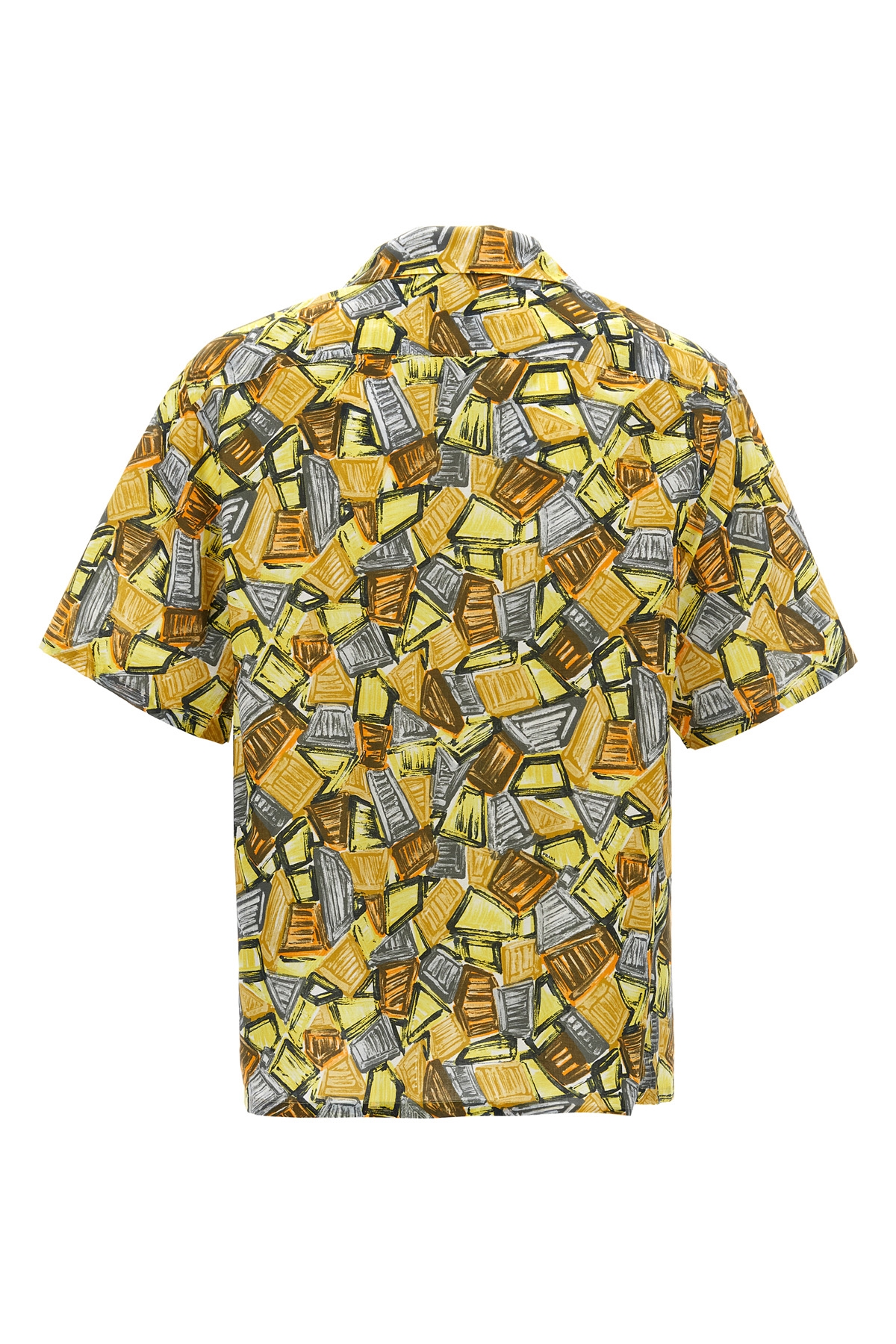 'Batista Triangl' poplin cotton shirt with all-over logo print, breast pocket, button closure, short sleeves, side splits.