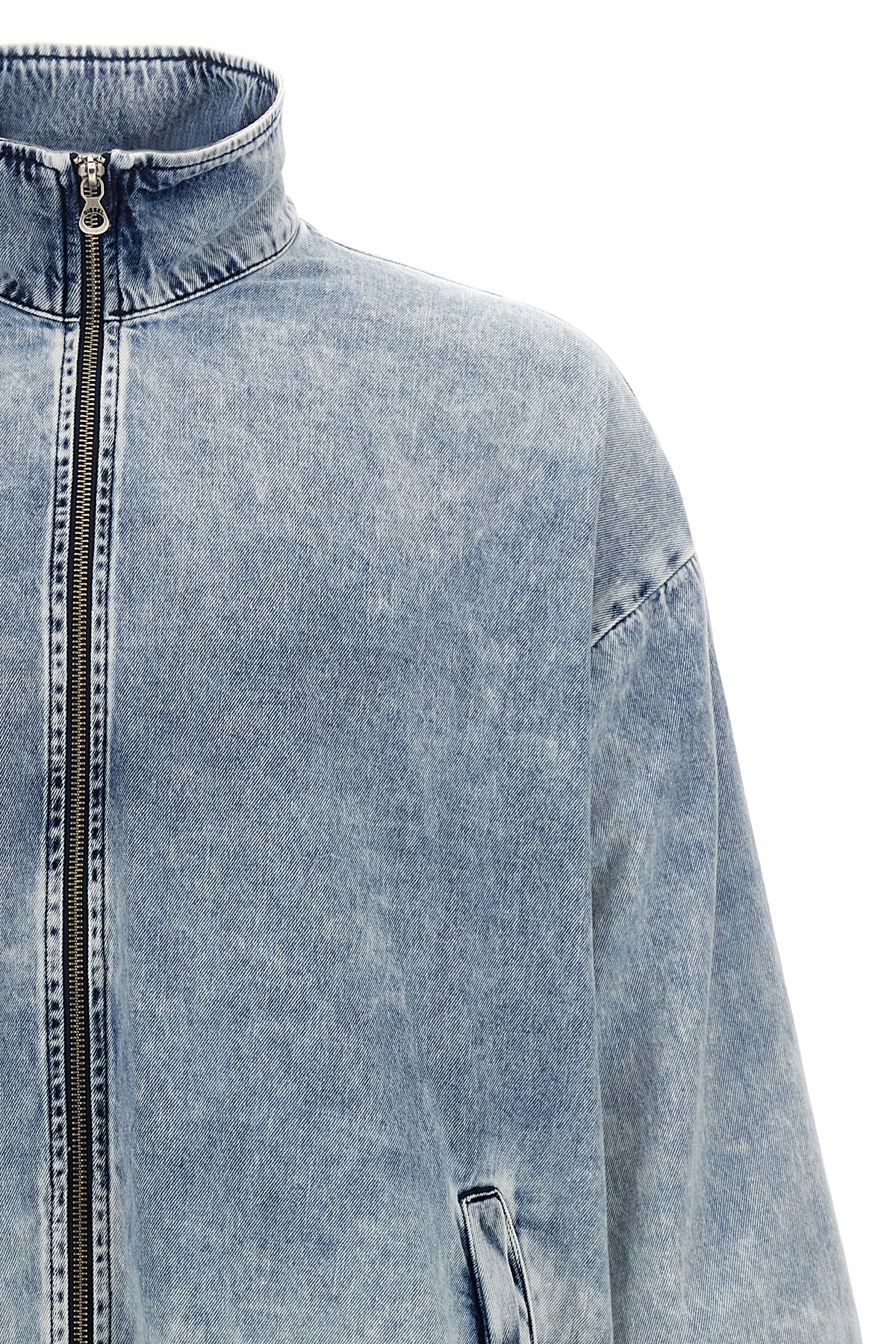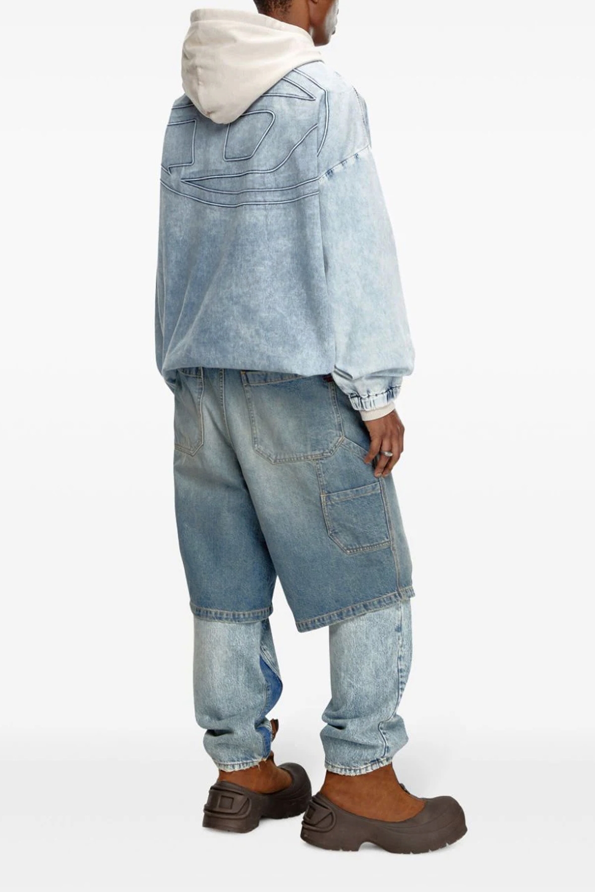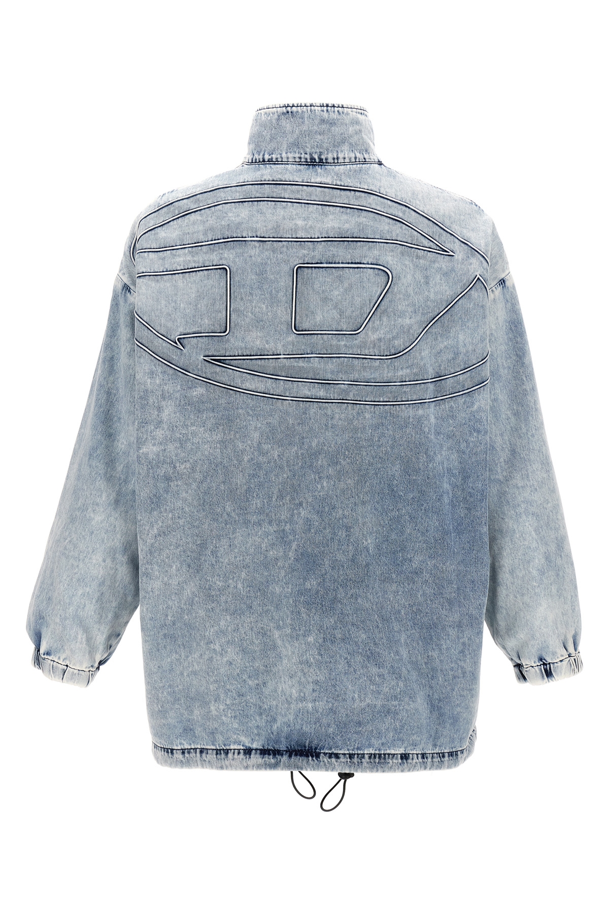 'D-Krap-S1' cotton denim jacket with back logo, zip closure, pockets, long sleeves with elastic cuffs, adjustable drawstring at the hem.