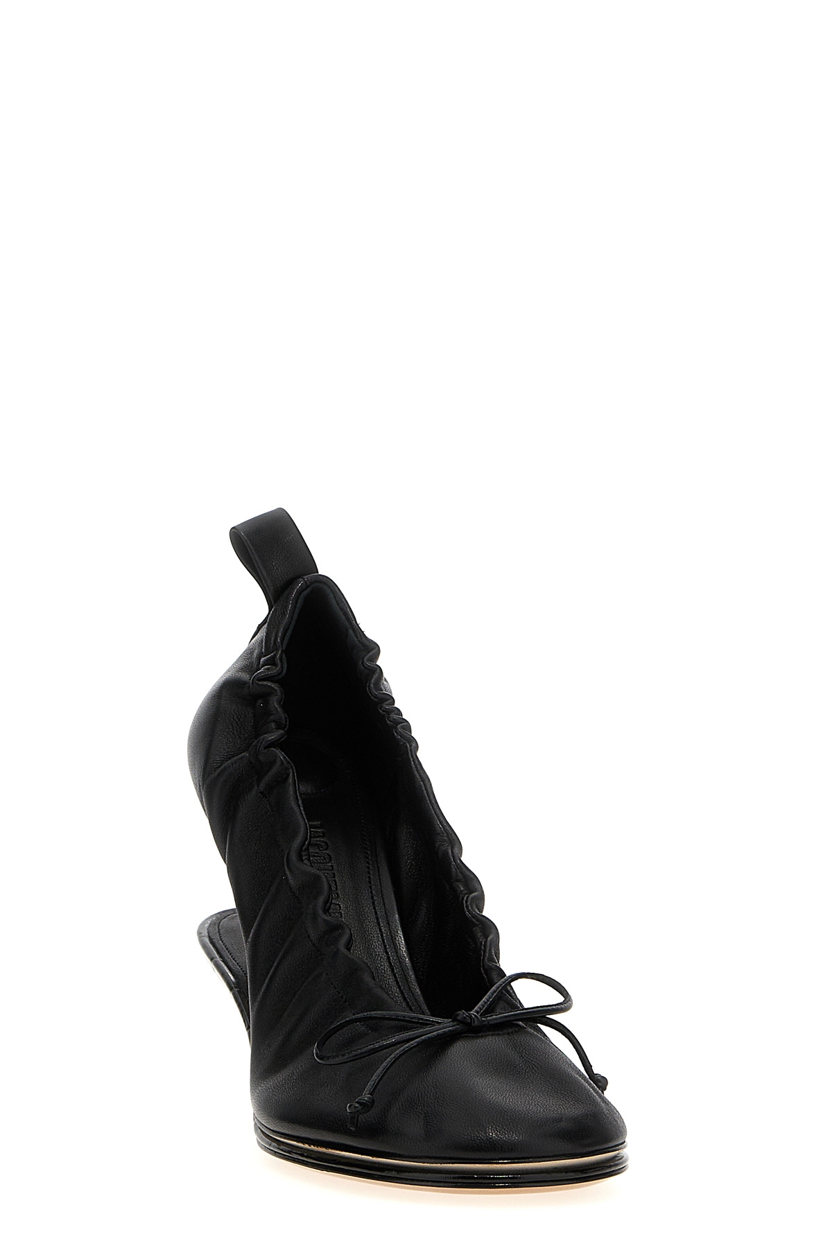 'Les Doubles Ballerines' nappa pumps with curled neckline, front bow applique, double heel.