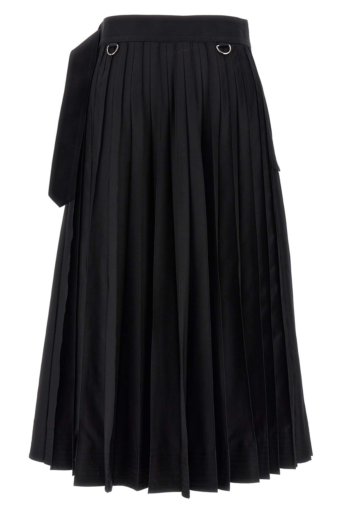 Long pleated skirt in cotton blend, wallet closure with button and adjustable belt at the waist.