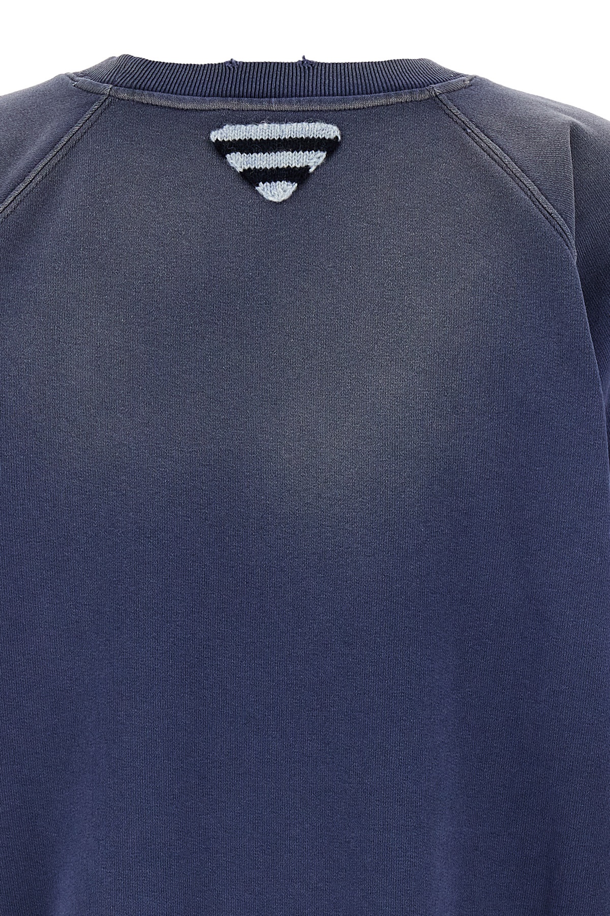 Gauze cotton sweatshirt with used effect logo print, vintage effect front logo print, triangle logo at the back, crew neck, short sleeves with raw cut hem.