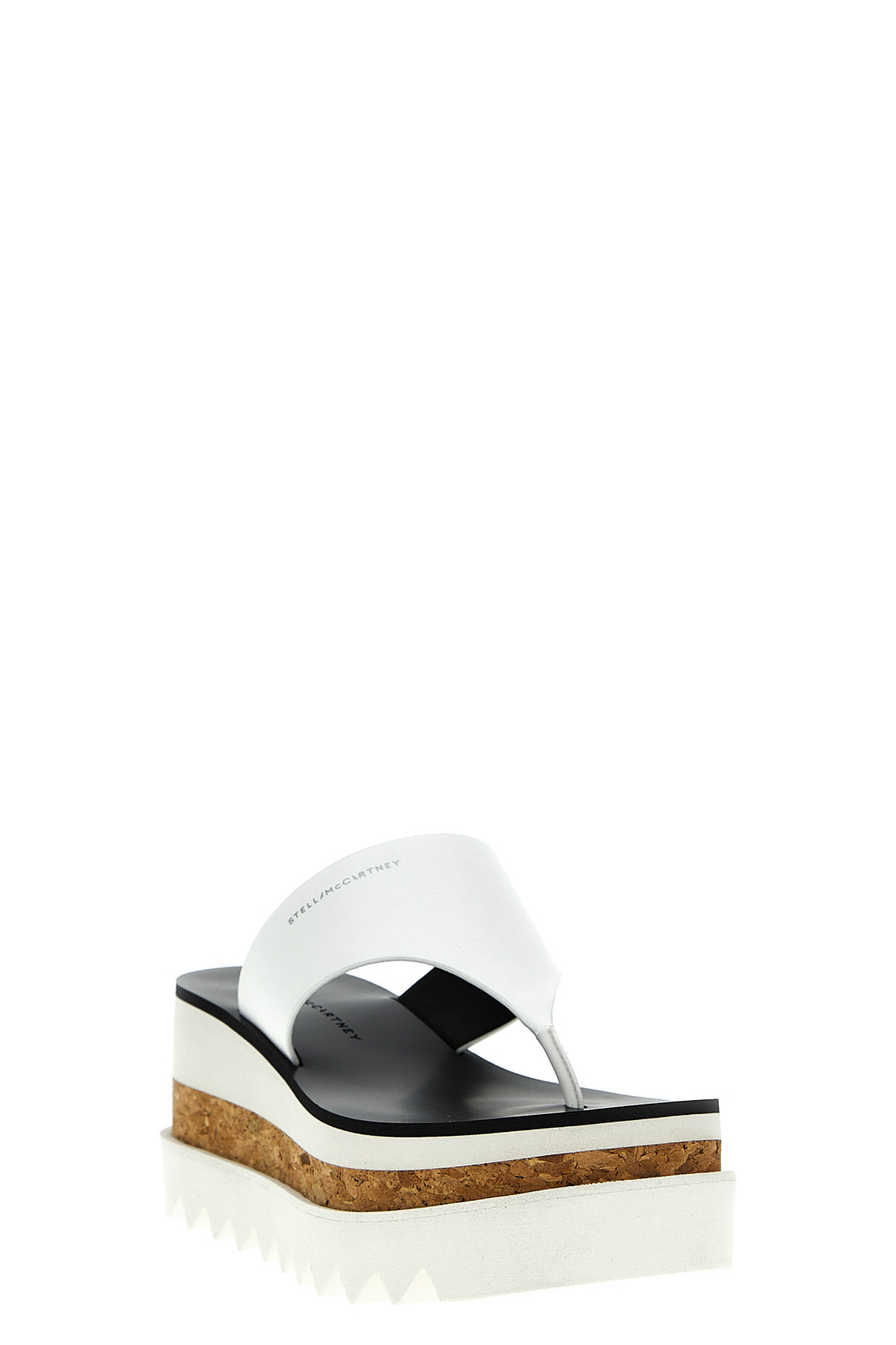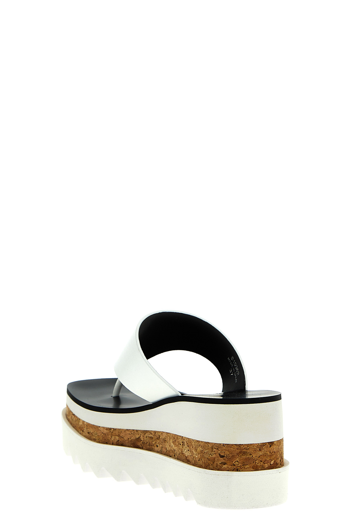 'Sneak-Elyse' thong sandals in GEGEA fabric with black wedge and cork, sole with serrated trim.