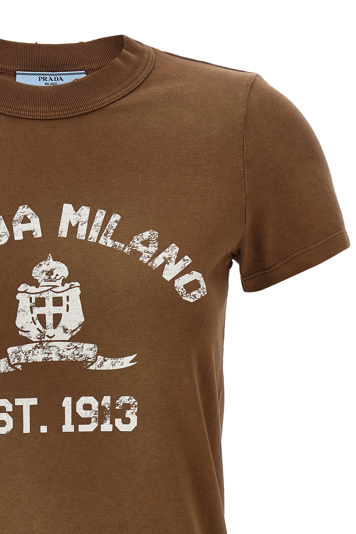 Used-effect cotton T-shirt with vintage logo print on the front, triangle logo crochet on the back, crew neck, and short sleeves.