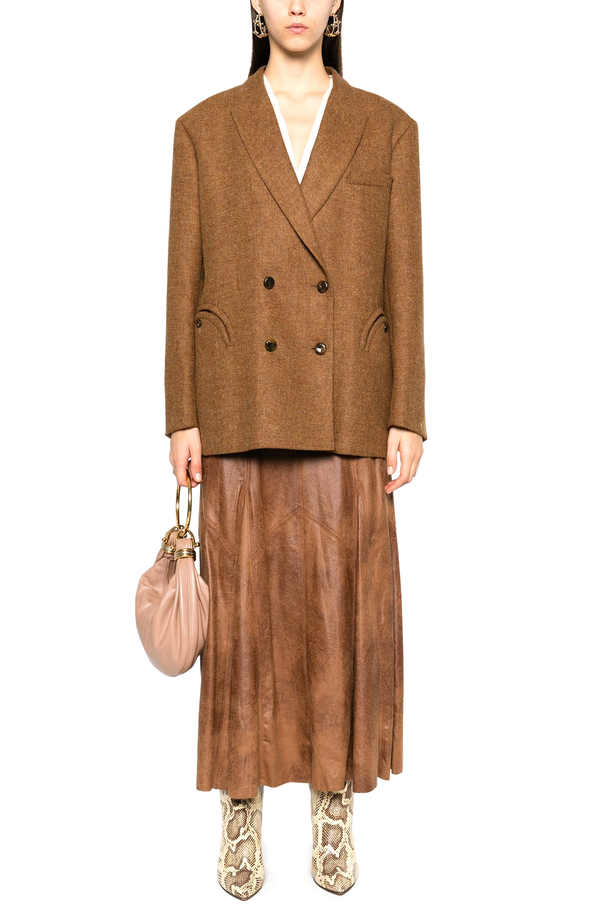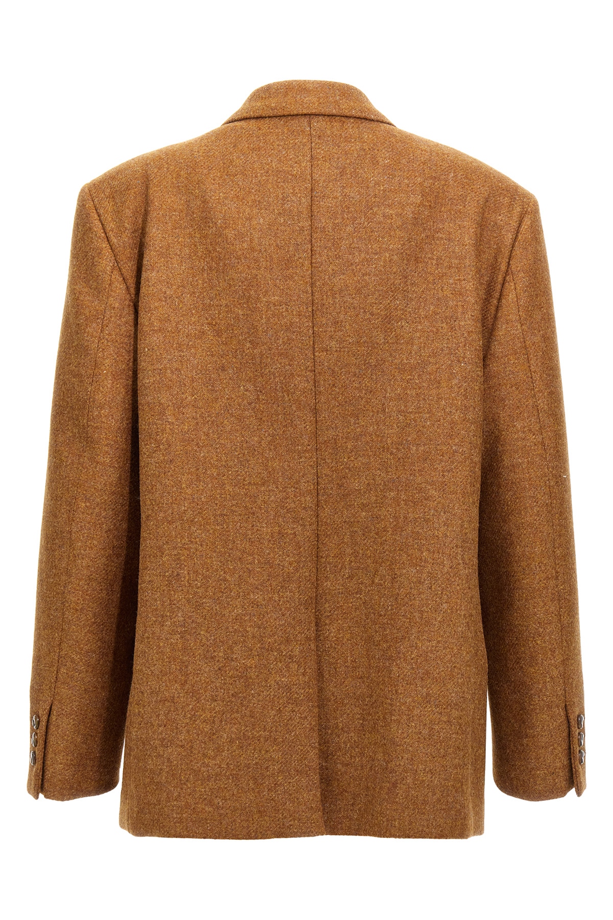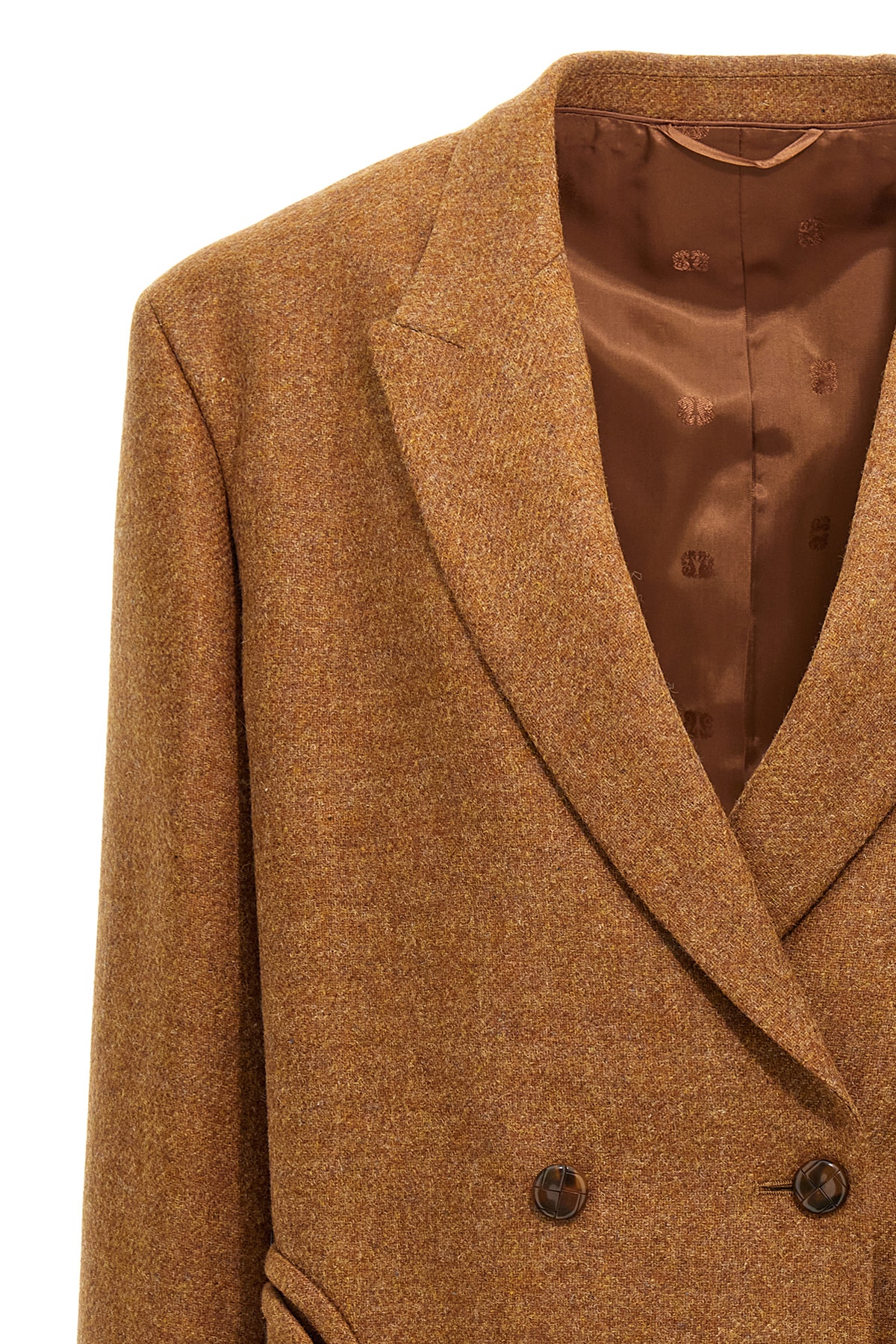 'Awatea Nightbreak' double-breasted wool blazer with button closure, pockets, slightly padded shoulders, long sleeves, back vent.