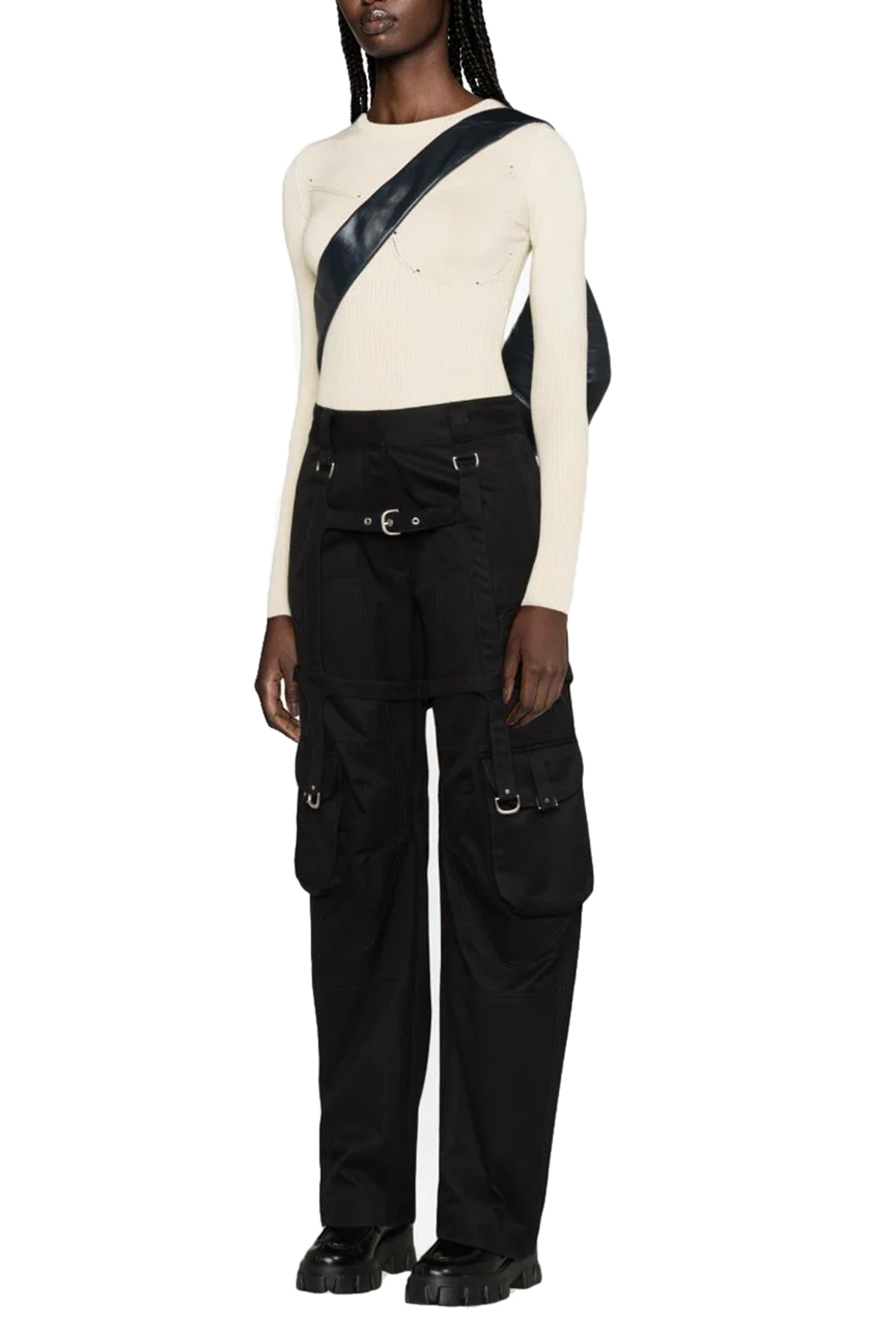 'Co Cargo' cotton pants with hook, zip and button closure, strap detail, pockets.