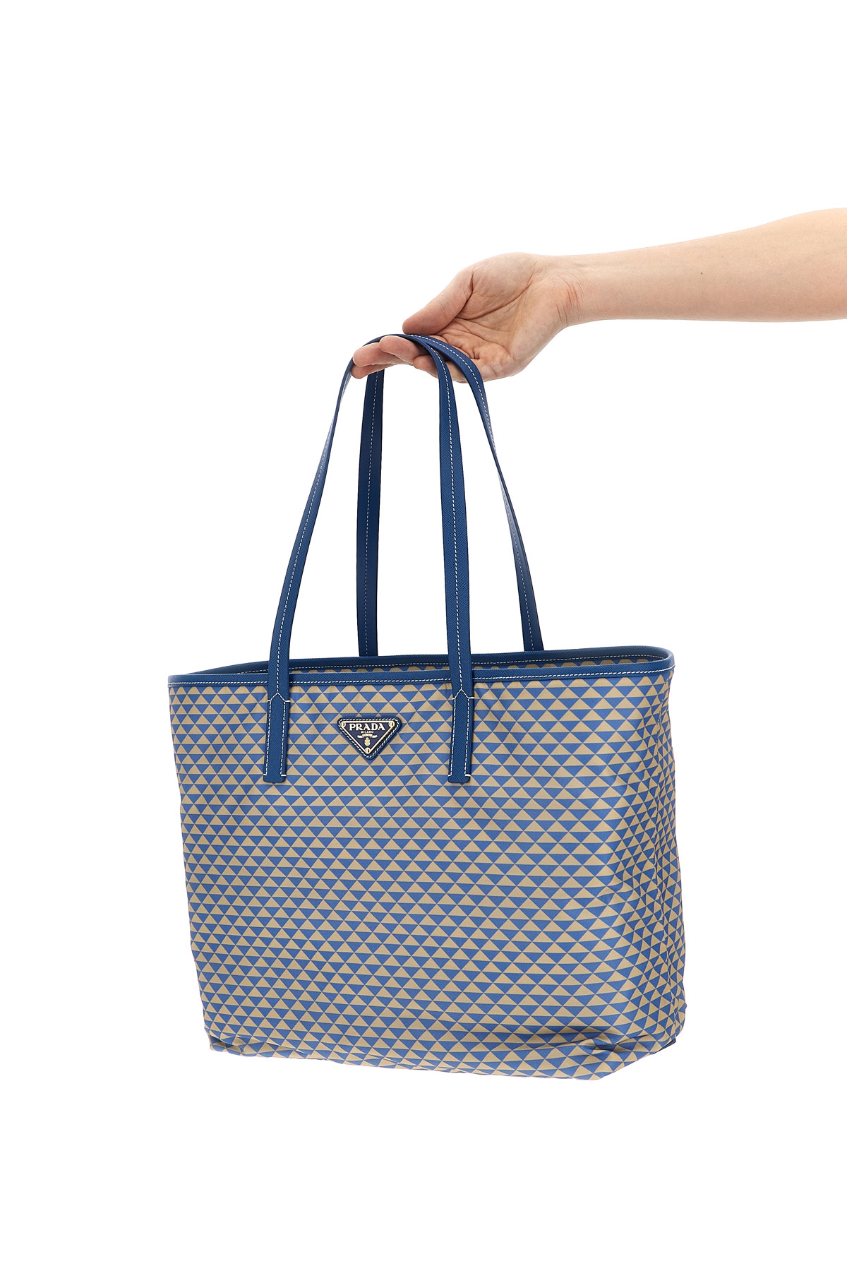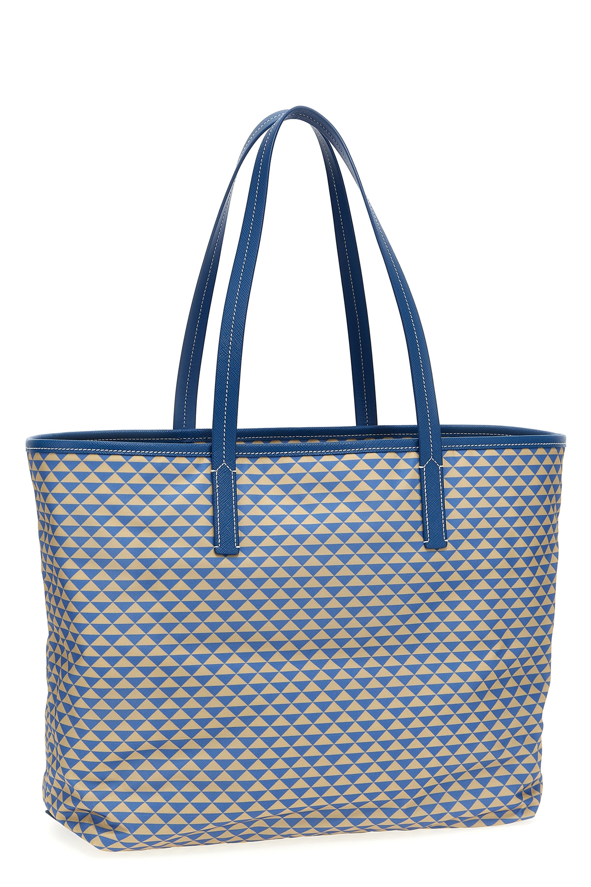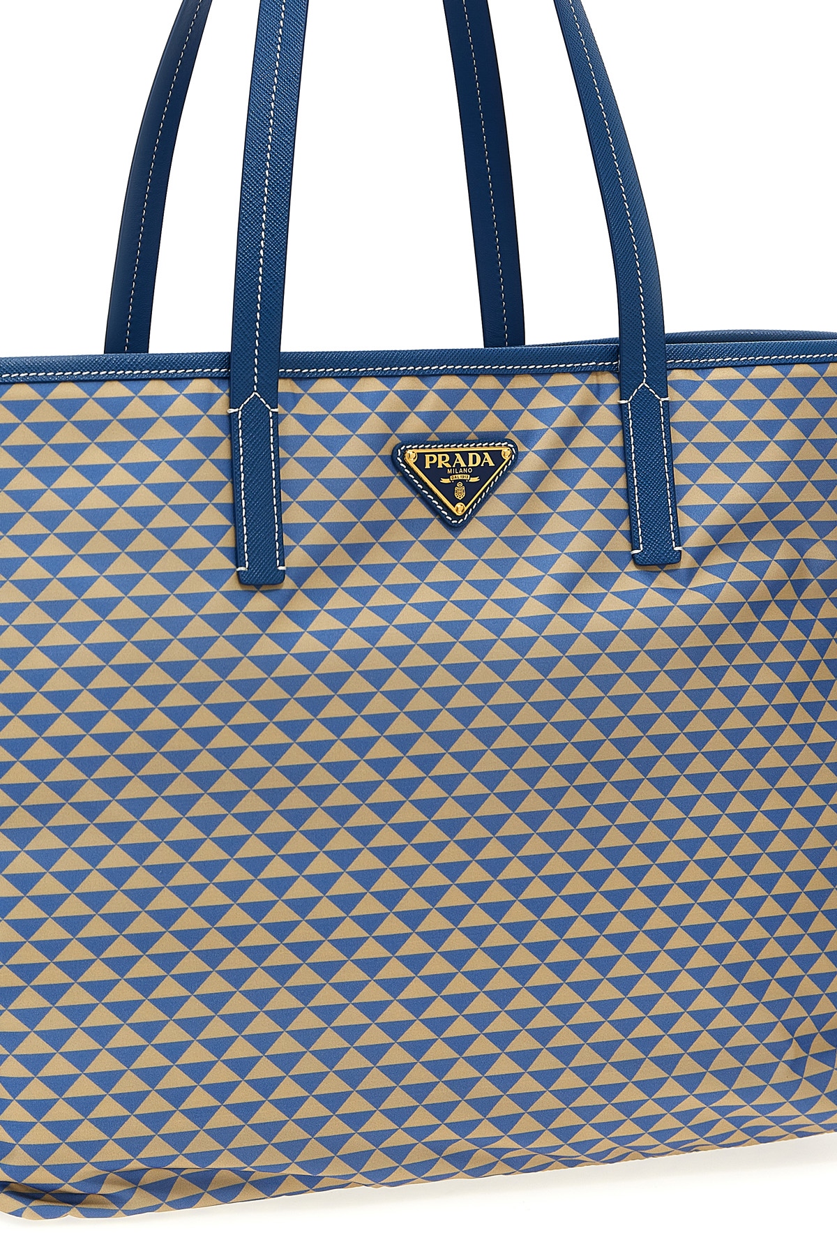 'Prada Symbole' shopping bag in Tria fabric with Saffiano leather piping, front enameled triangle logo, double fixed handle.