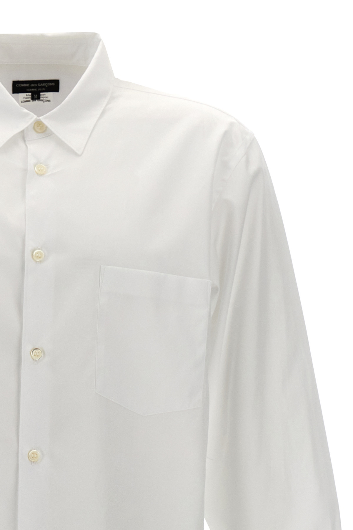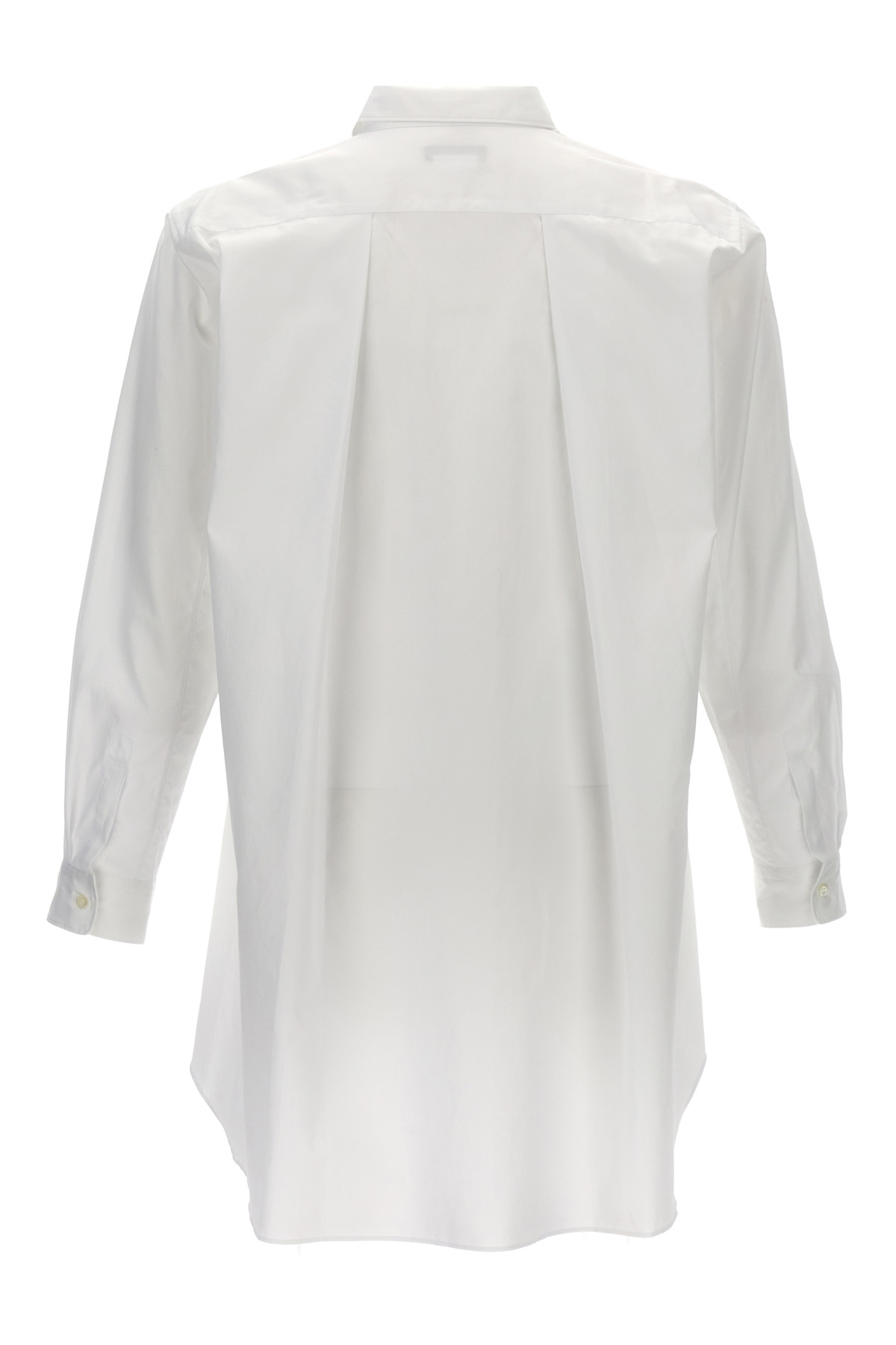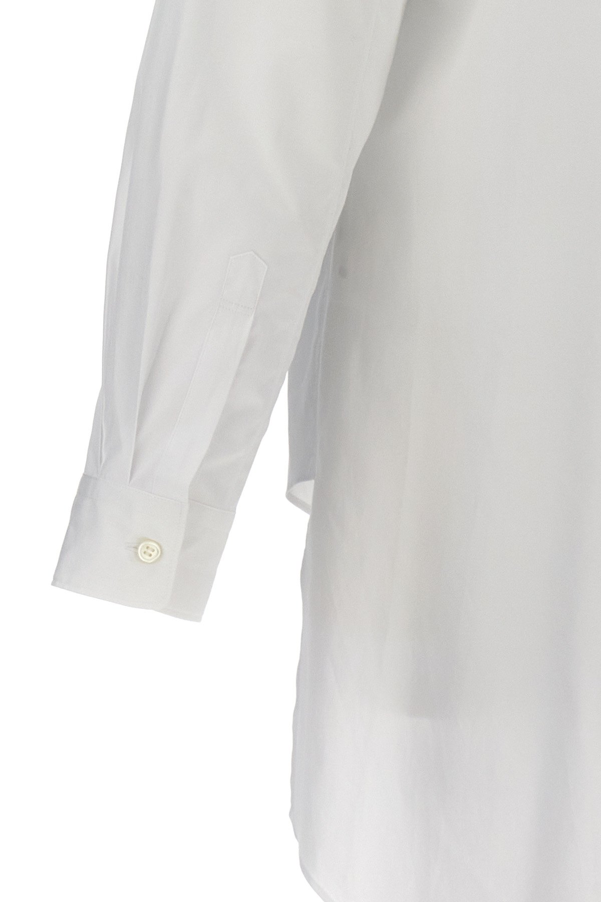 Cotton shirt with button closure, long cuffed sleeves, and asymmetric hem.