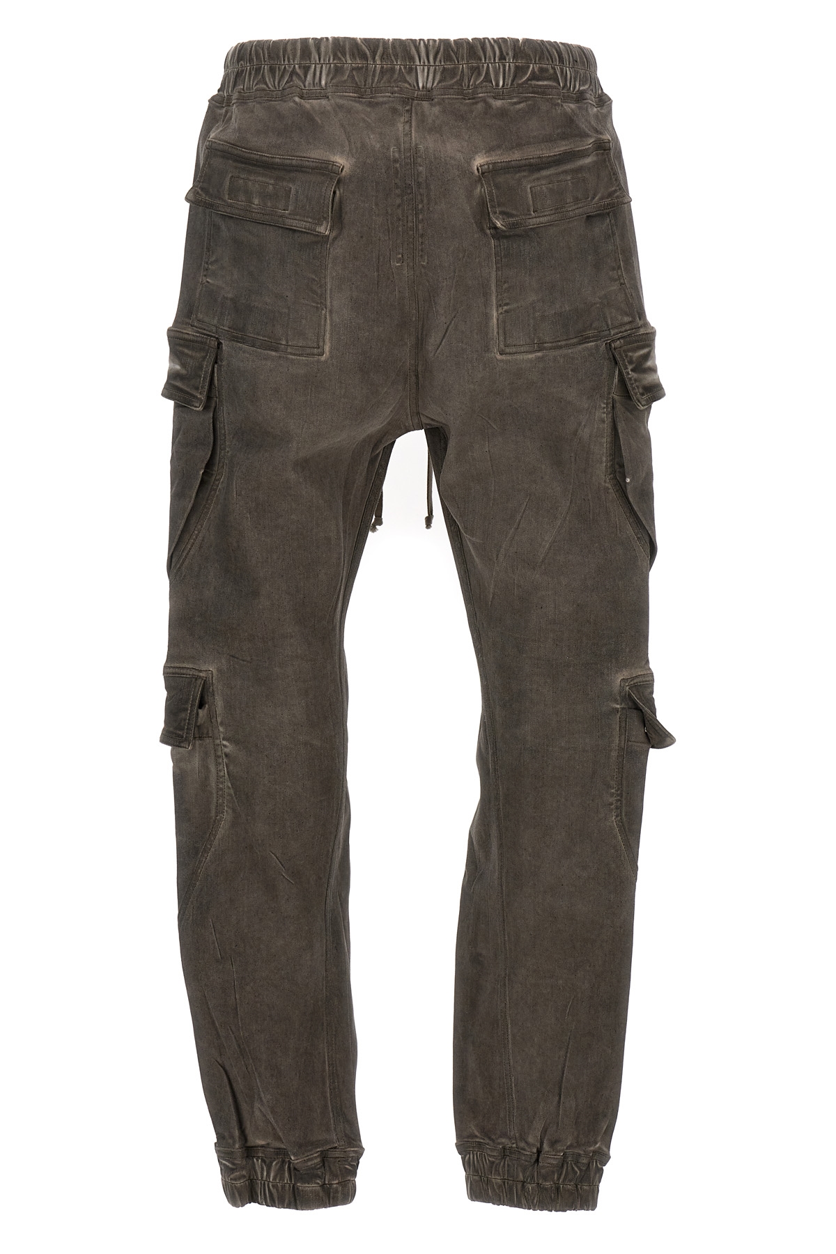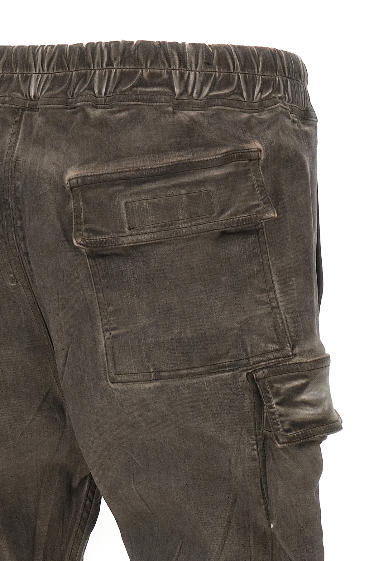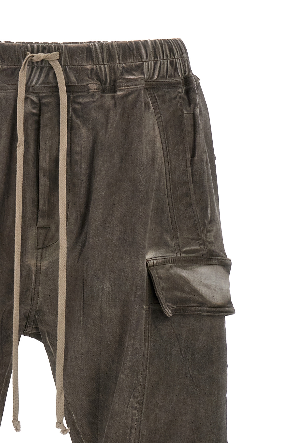 'Mastodon Megacargo' trousers in coated effect cotton blend, elastic and drawstring at the waist, flap with buttons, pockets, elastic ankle cuffs.